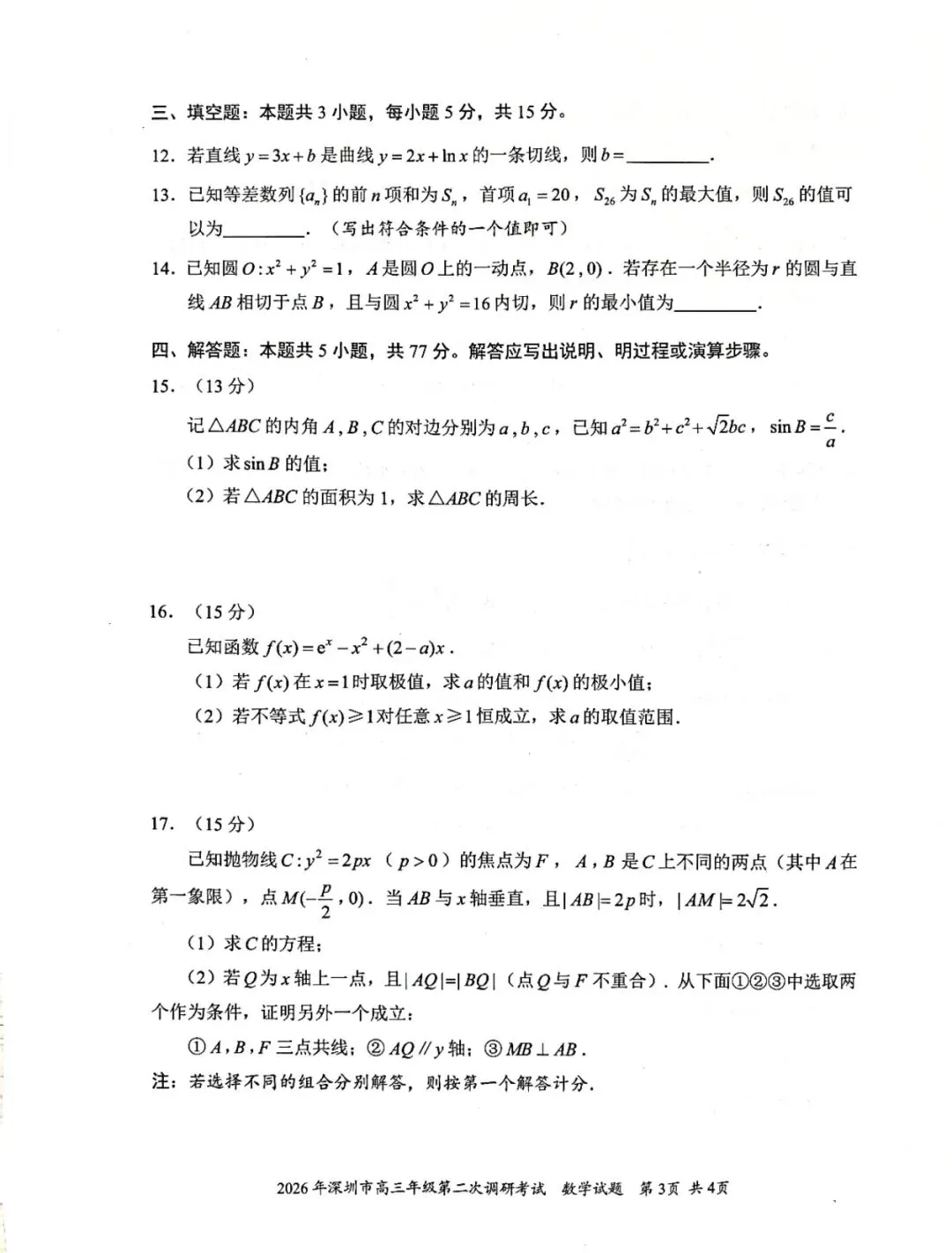 九科全!2026天津市河东区高考二模试卷与答案已出!