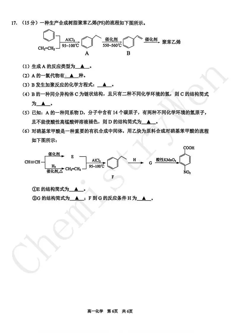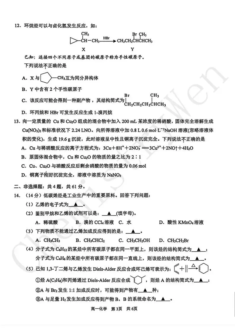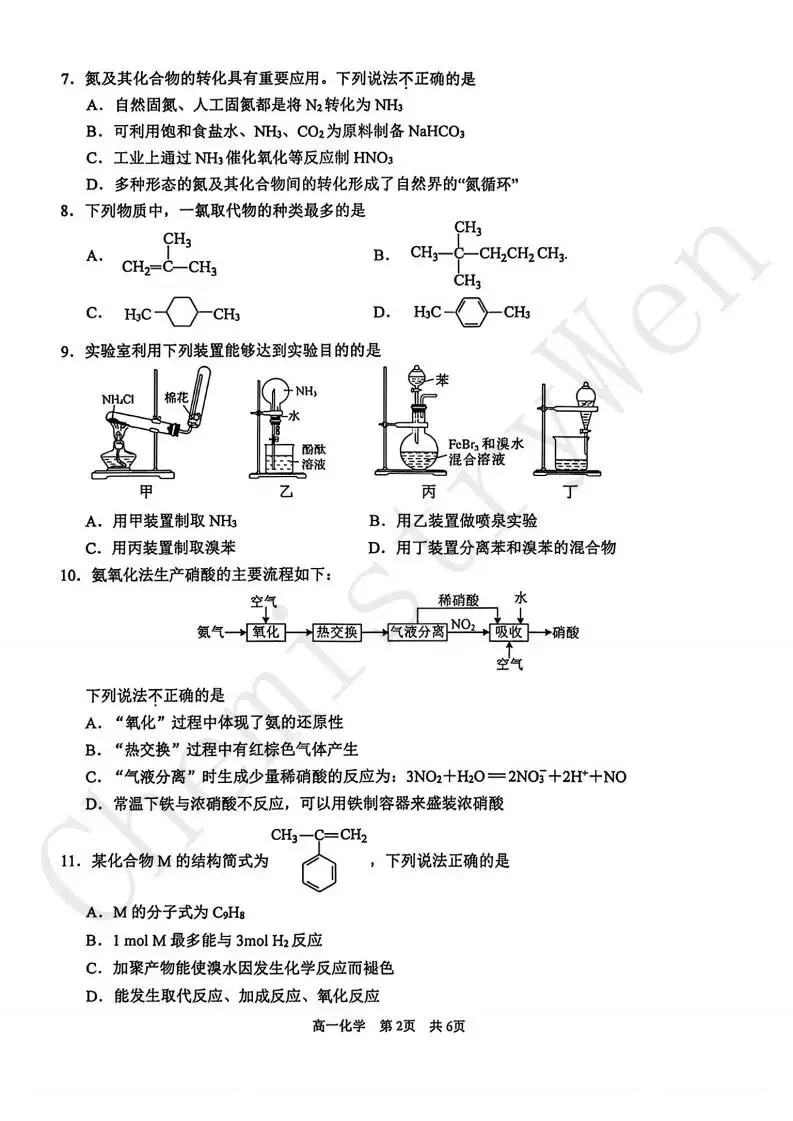 试卷精讲|2025-2026西附高一(下)3月月考化学