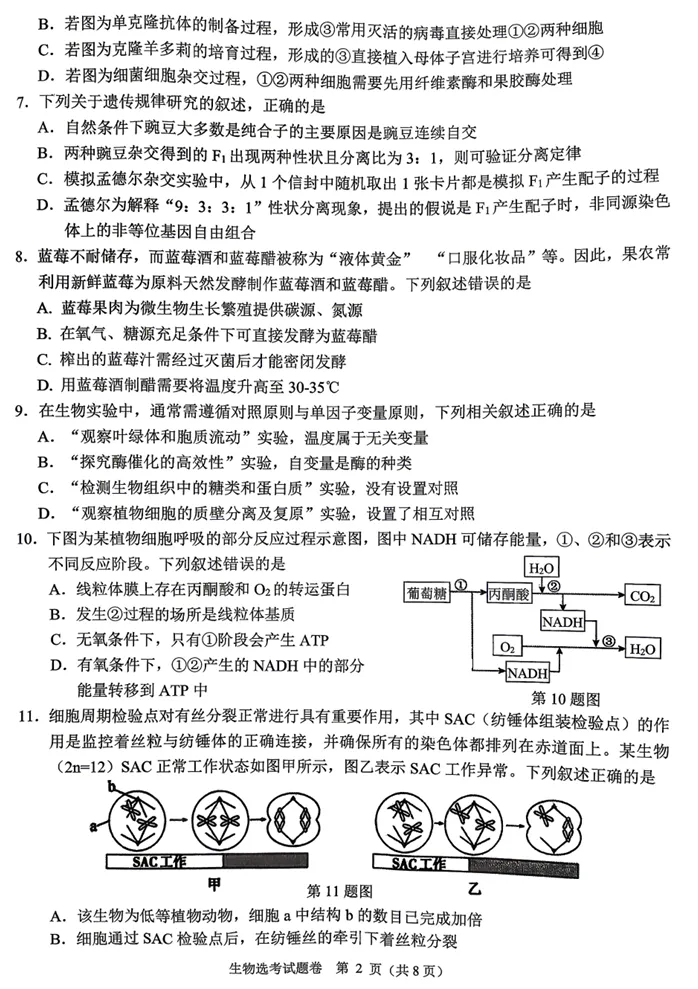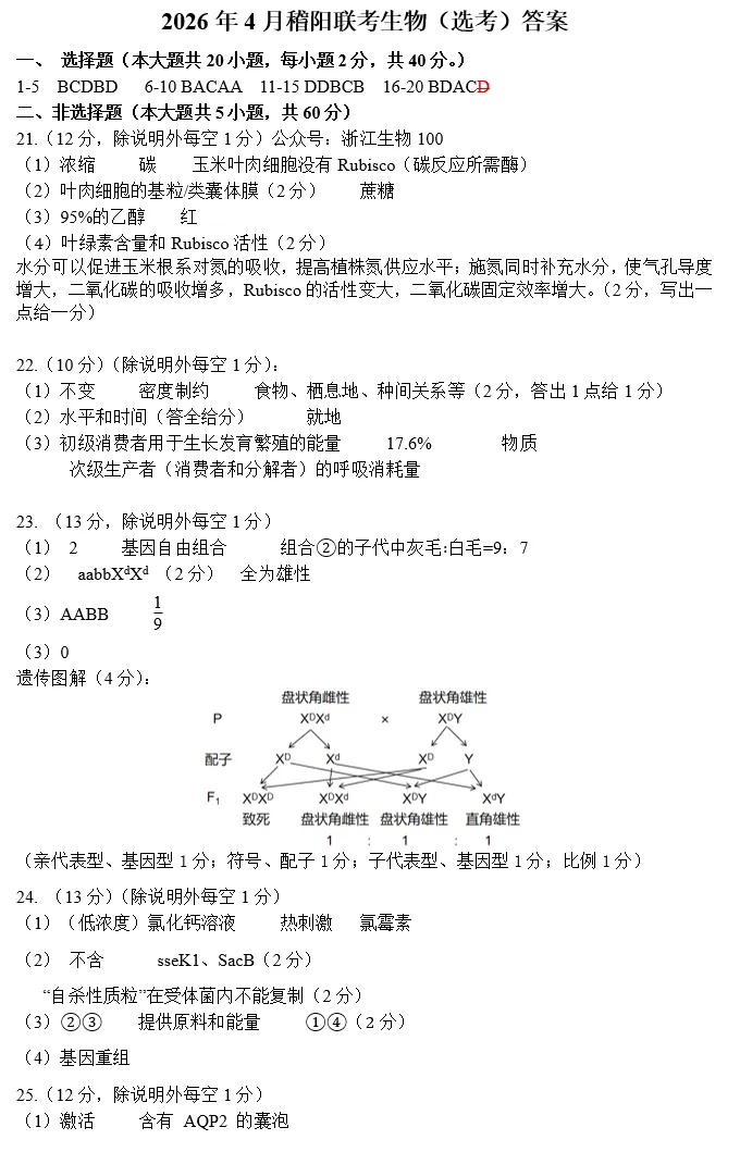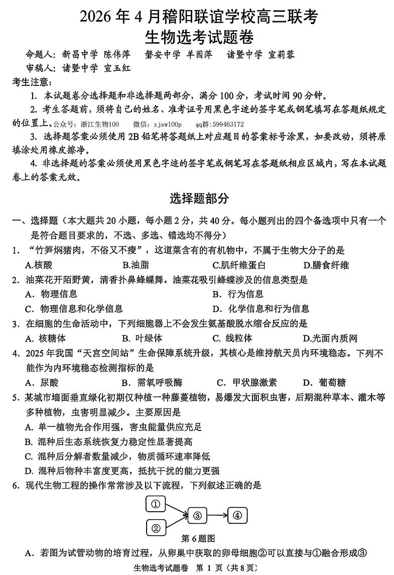 2026年2-3月宁波十校、金丽衢十二校、七彩阳光、名校协作G12、强基联盟、新阵地高三生物试卷答案、解析、赋分表汇总可下载!