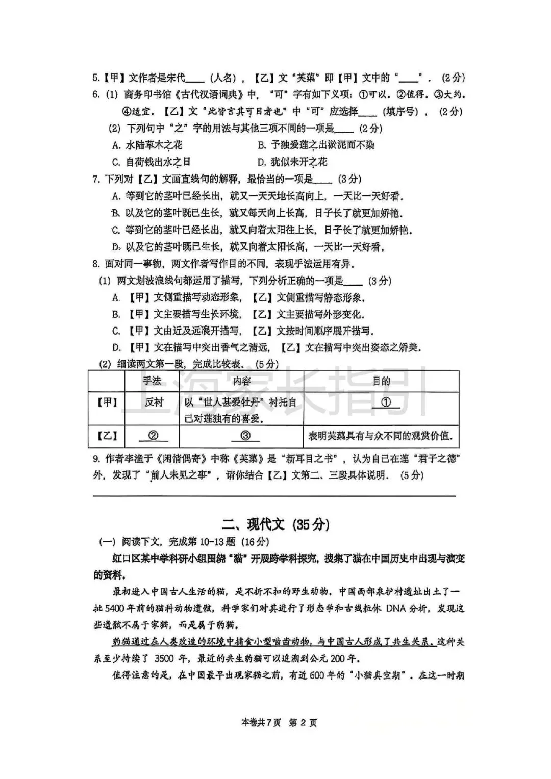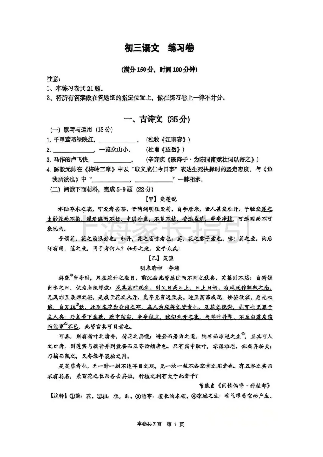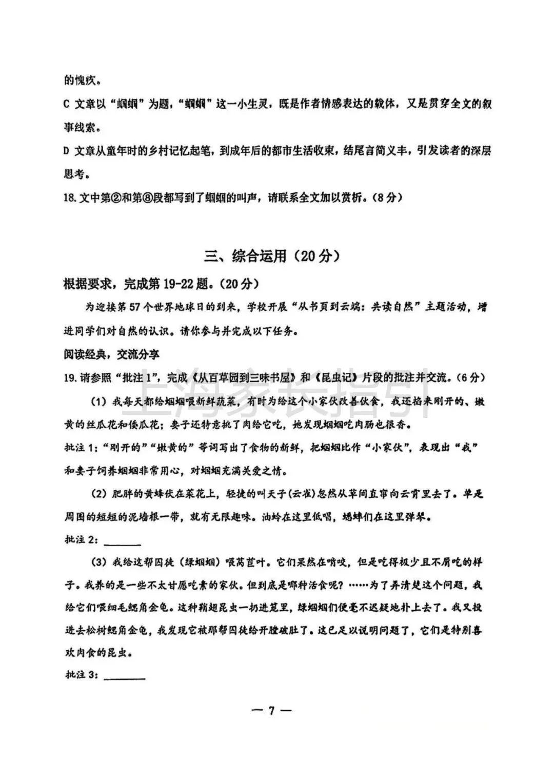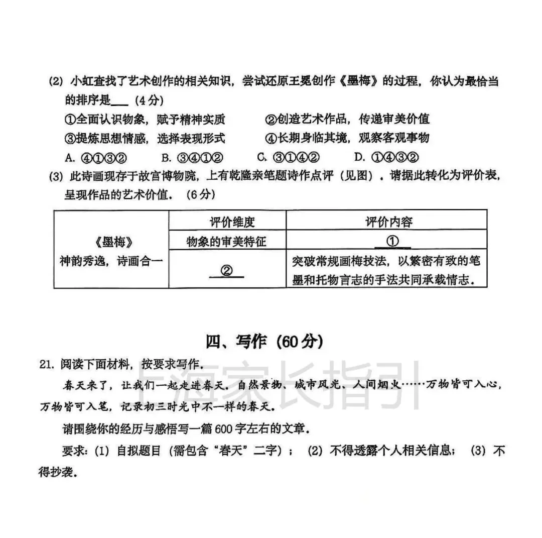 初三二模 | 语文试卷及评析 <杨浦+闵行+虹口>