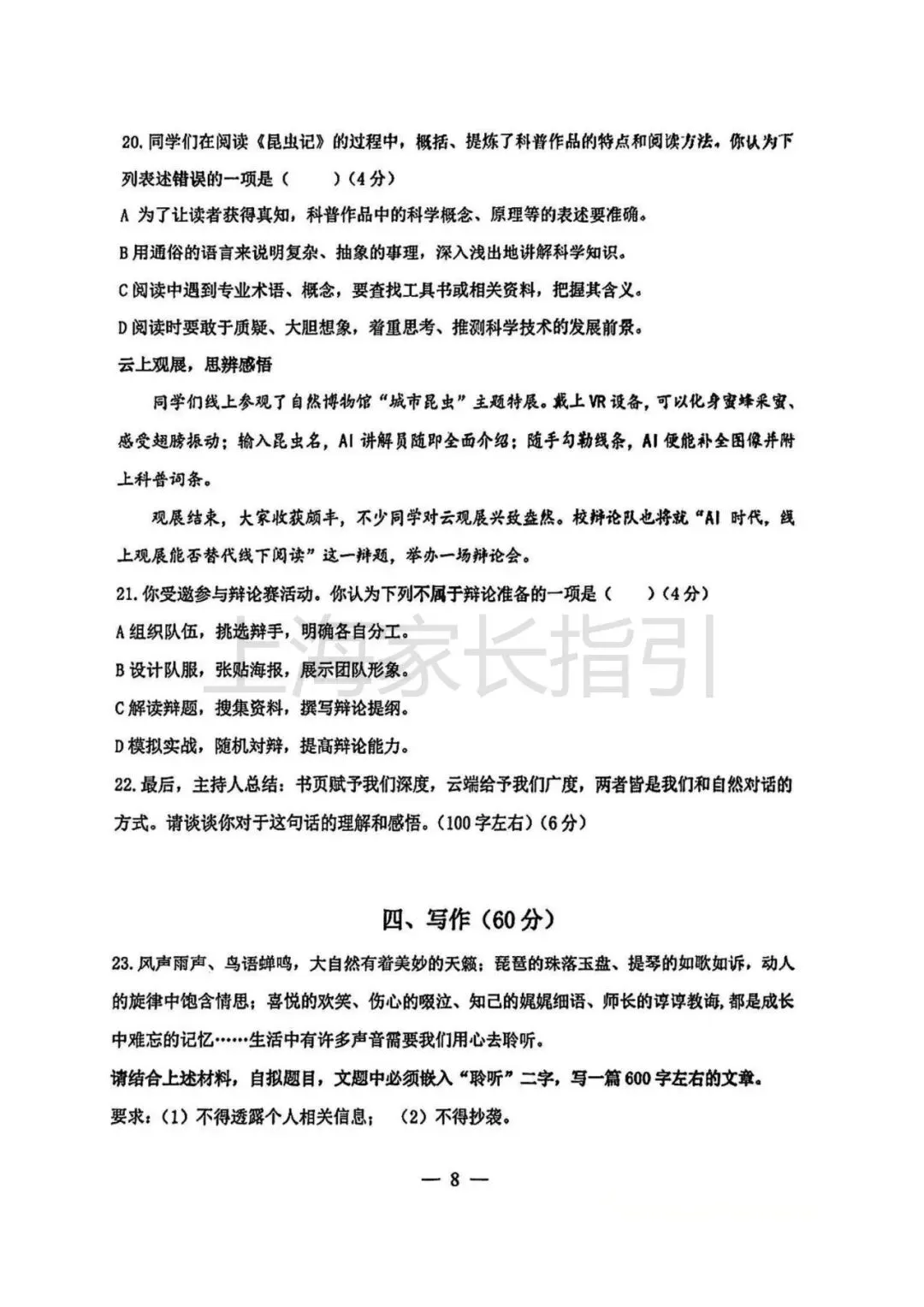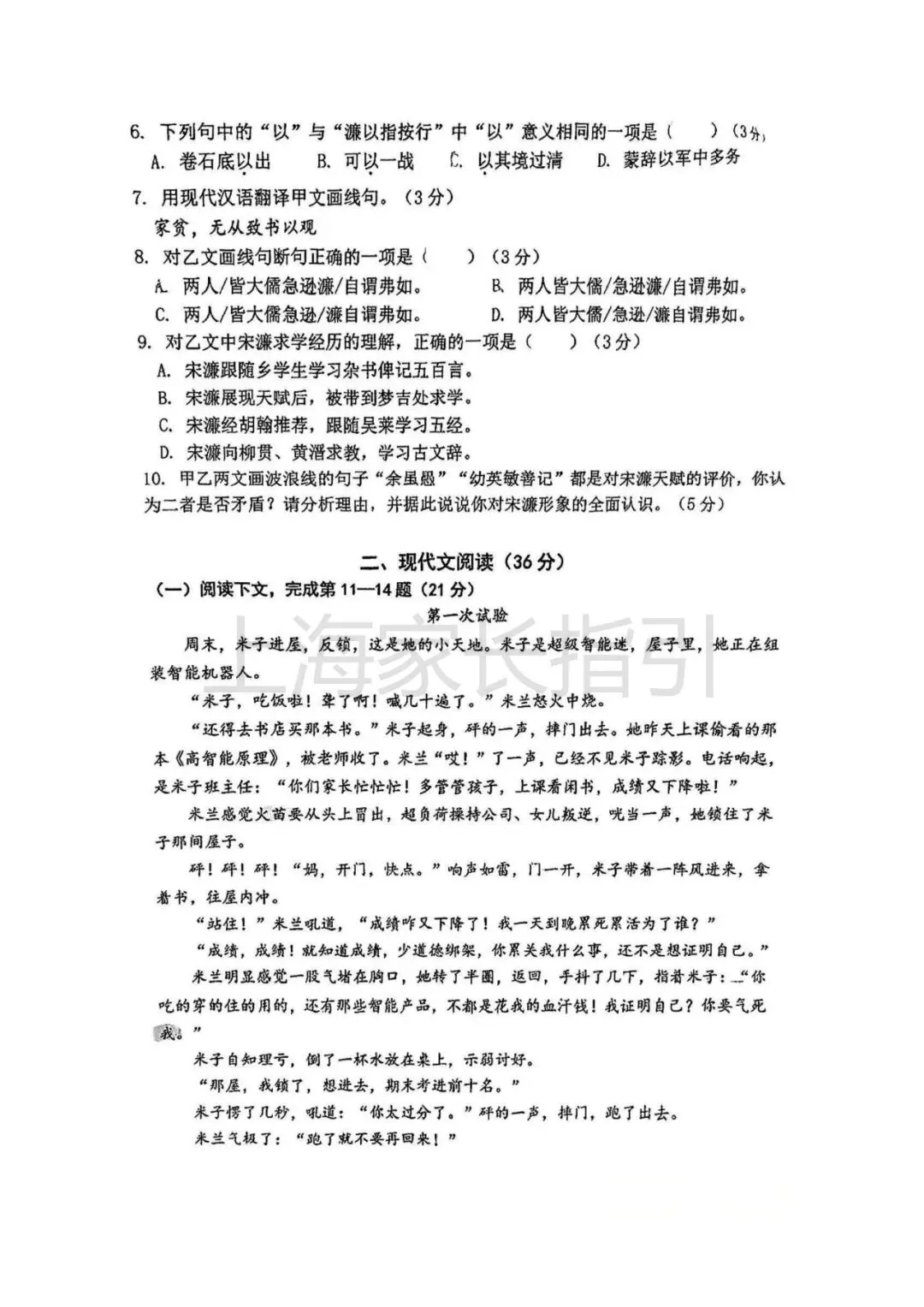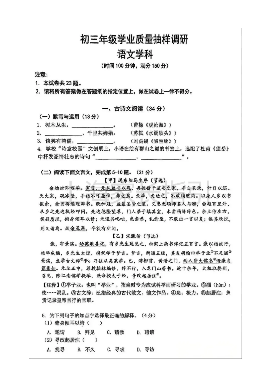 初三二模 | 语文试卷及评析 <杨浦+闵行+虹口>