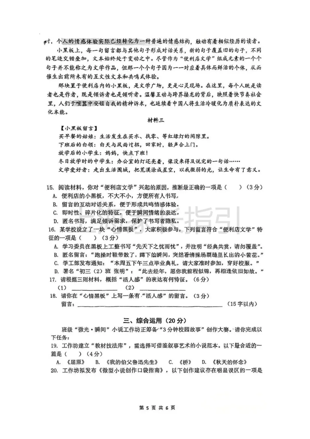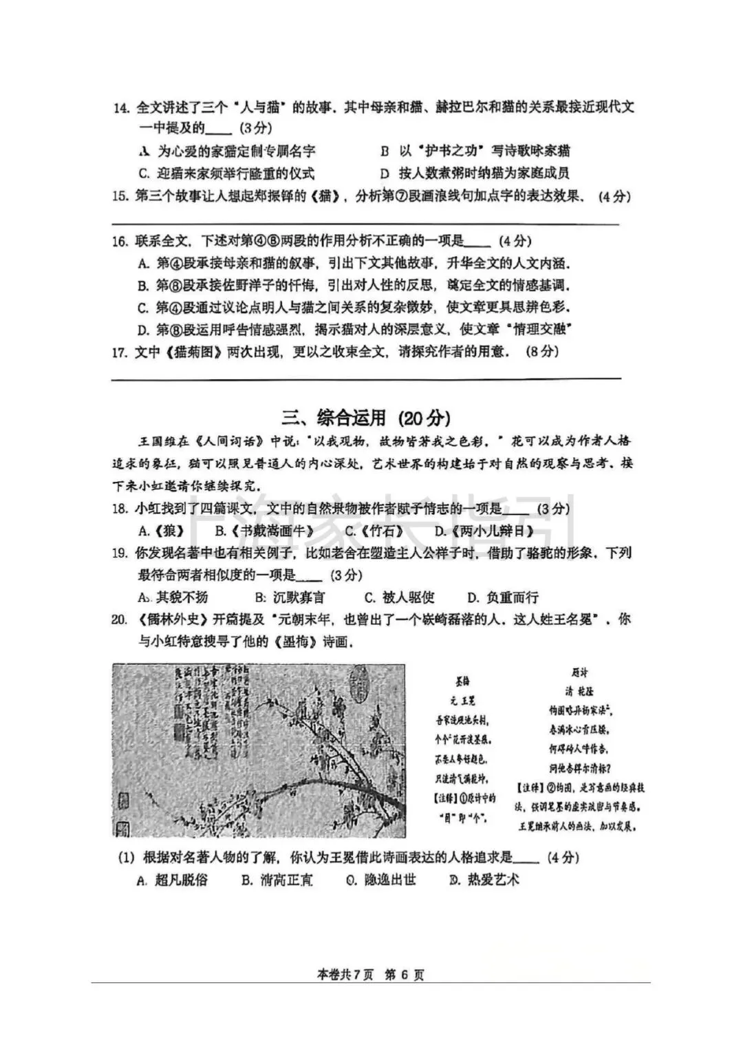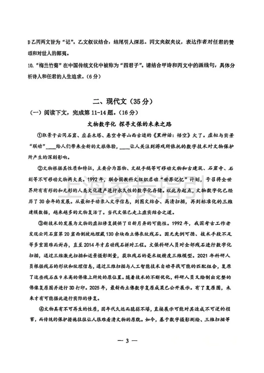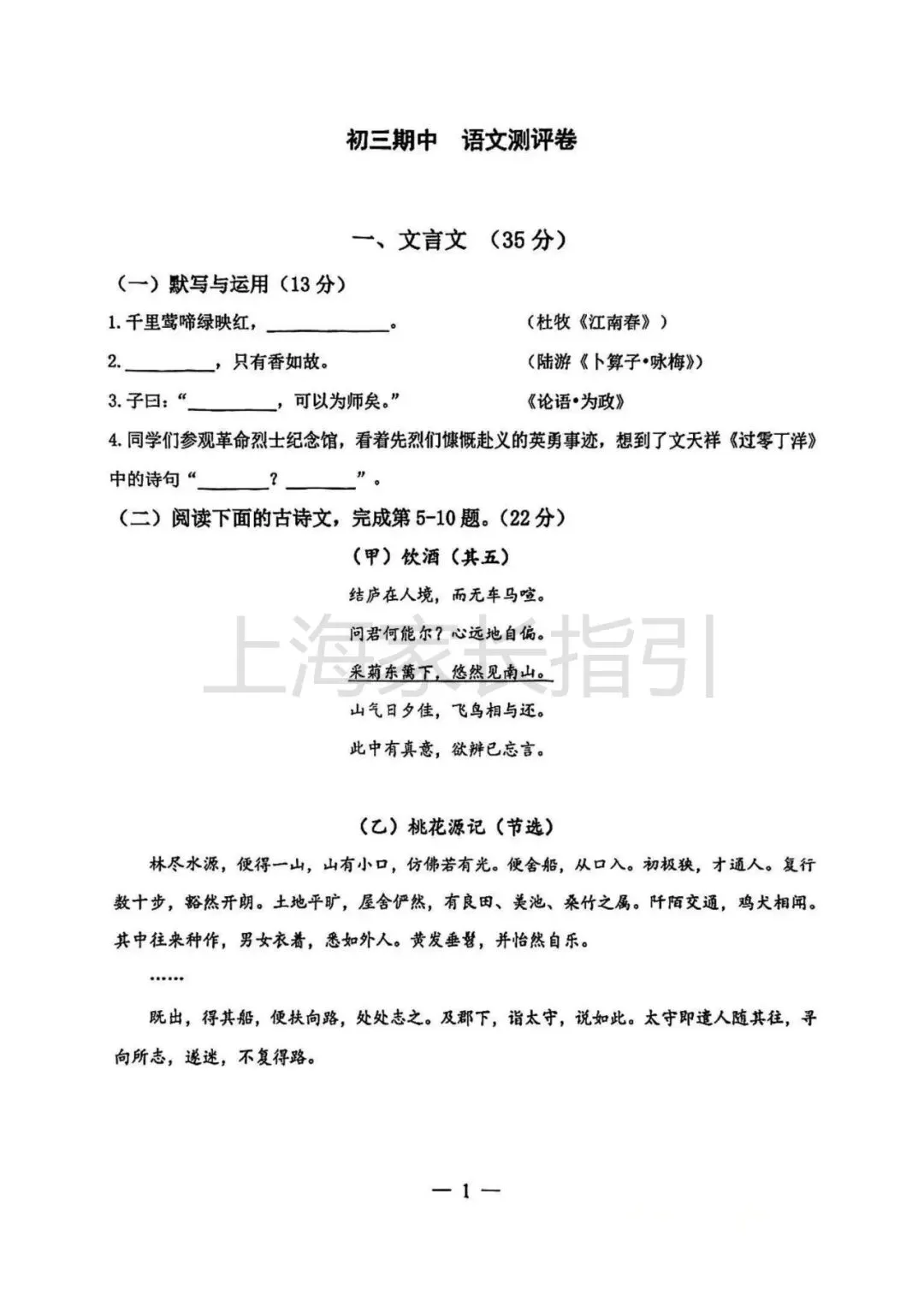 初三二模 | 语文试卷及评析 <杨浦+闵行+虹口>