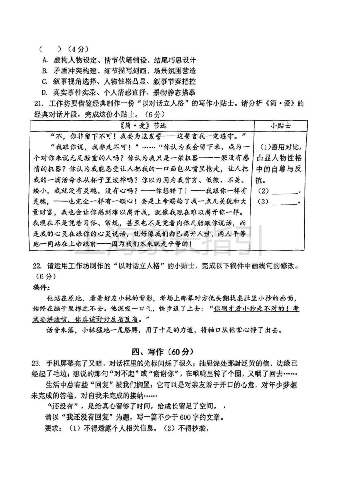 2026年上海静安 初三二模英语试卷真题,持续更新….