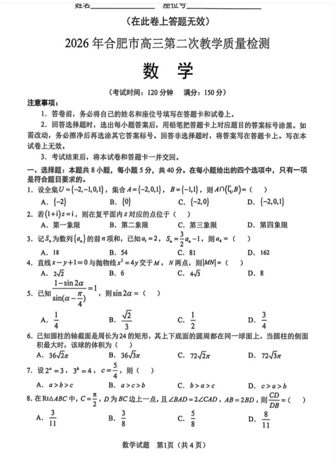 【绵阳三诊】2026年高考适应性考试全科真题及答案汇总!
