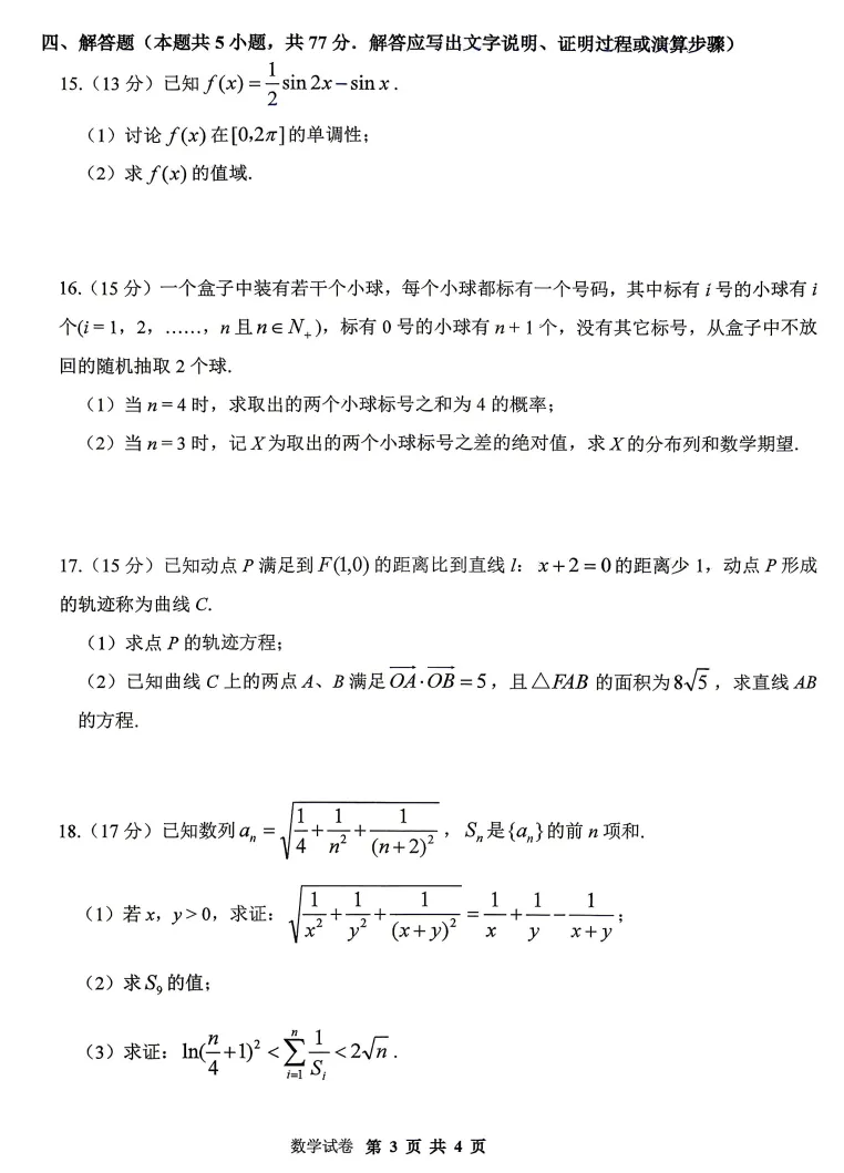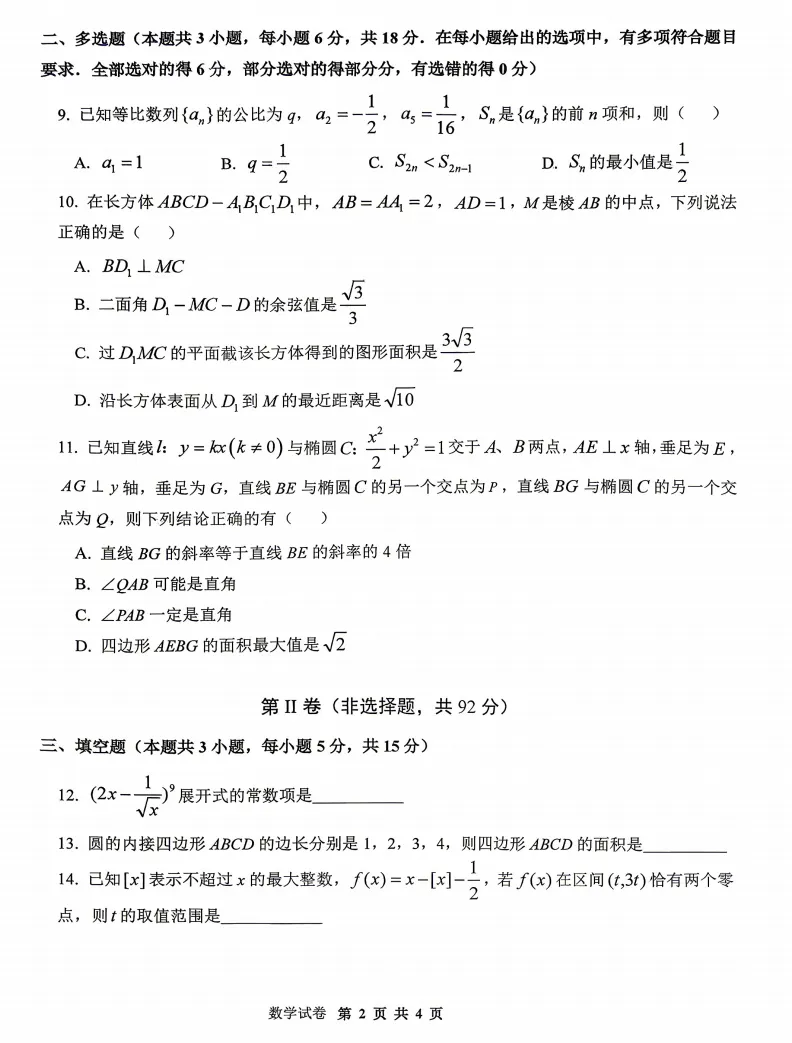 2026合肥二模数学试卷及答案