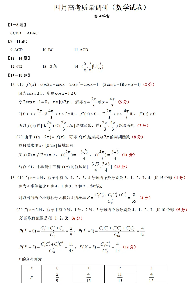 四月高考质量调研数学答案(1).pdf
