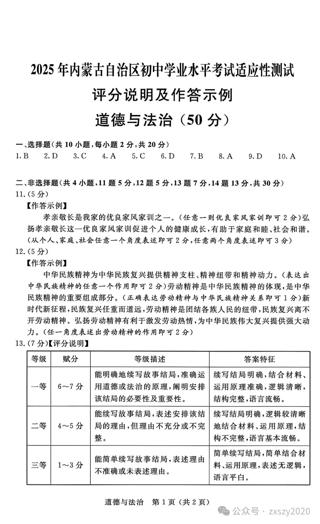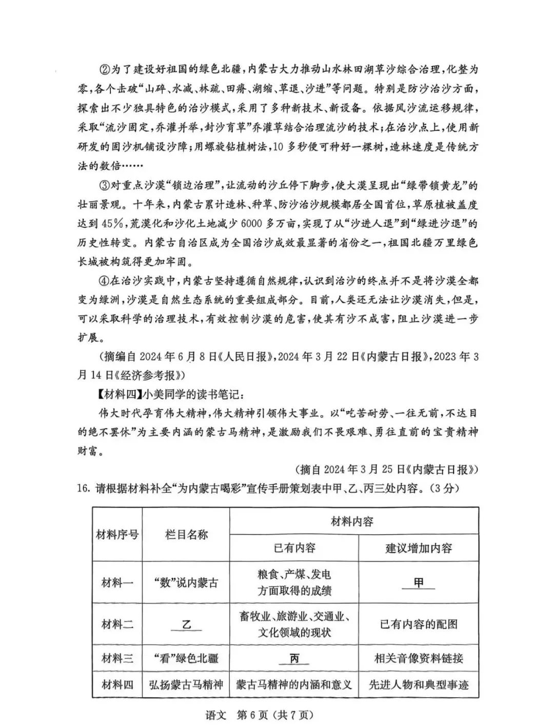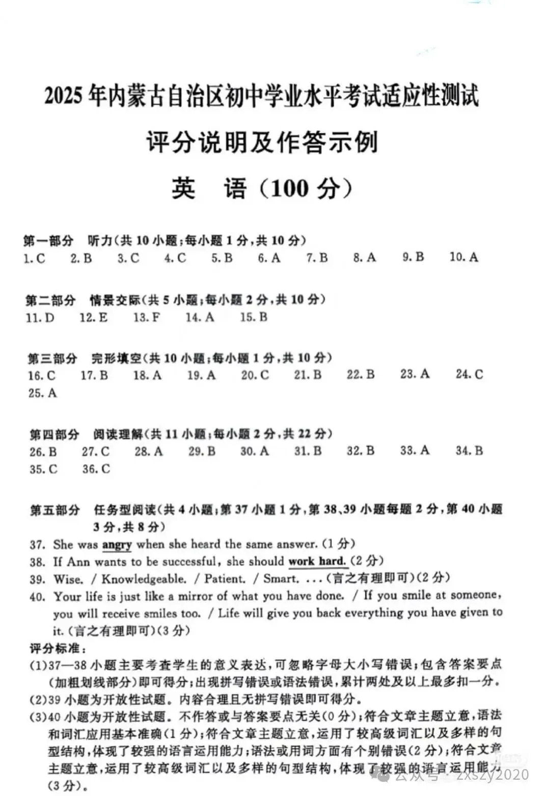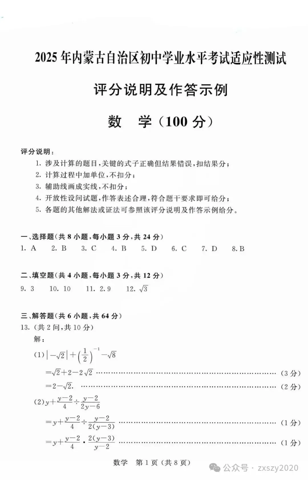 >2025年3月内蒙古中考适应性试卷和答案:语文数学英语物理化学道法历史