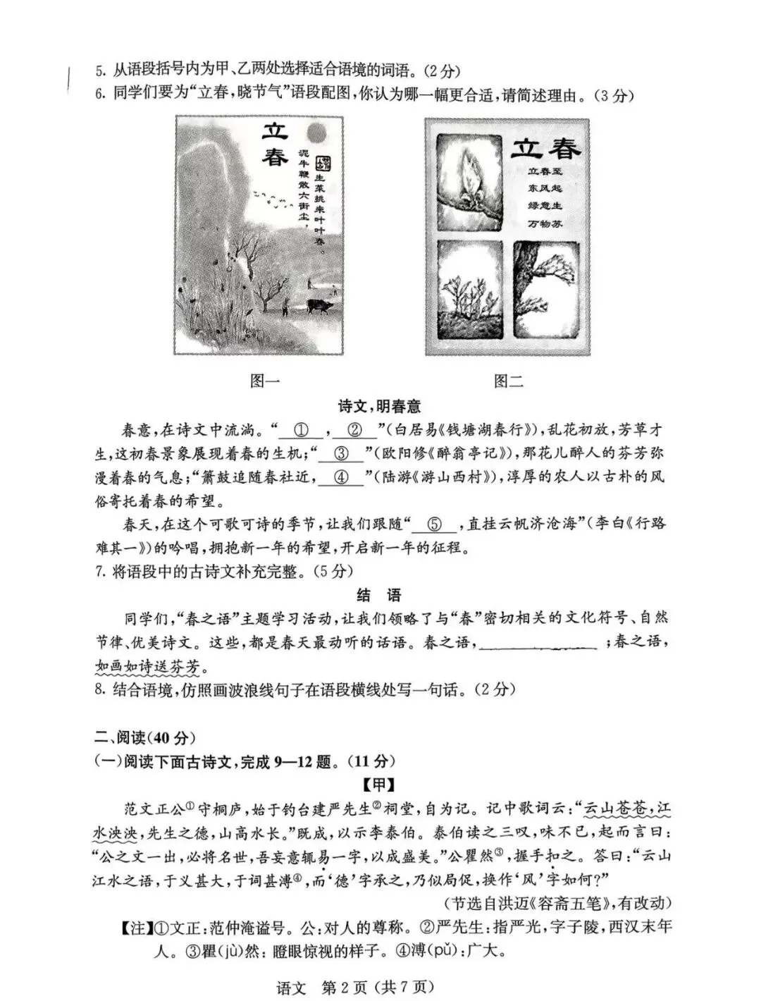 2026年松江初三二模语文试卷(含答案)