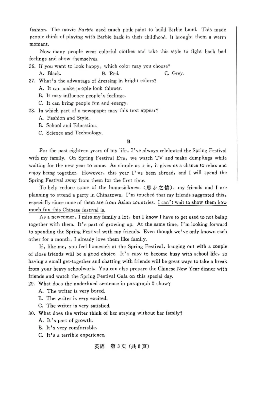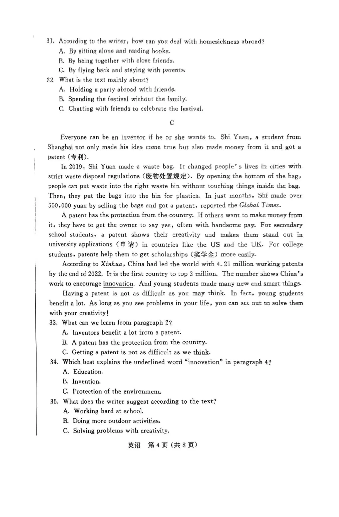 2026年上海静安 初三二模英语试卷真题,持续更新….
