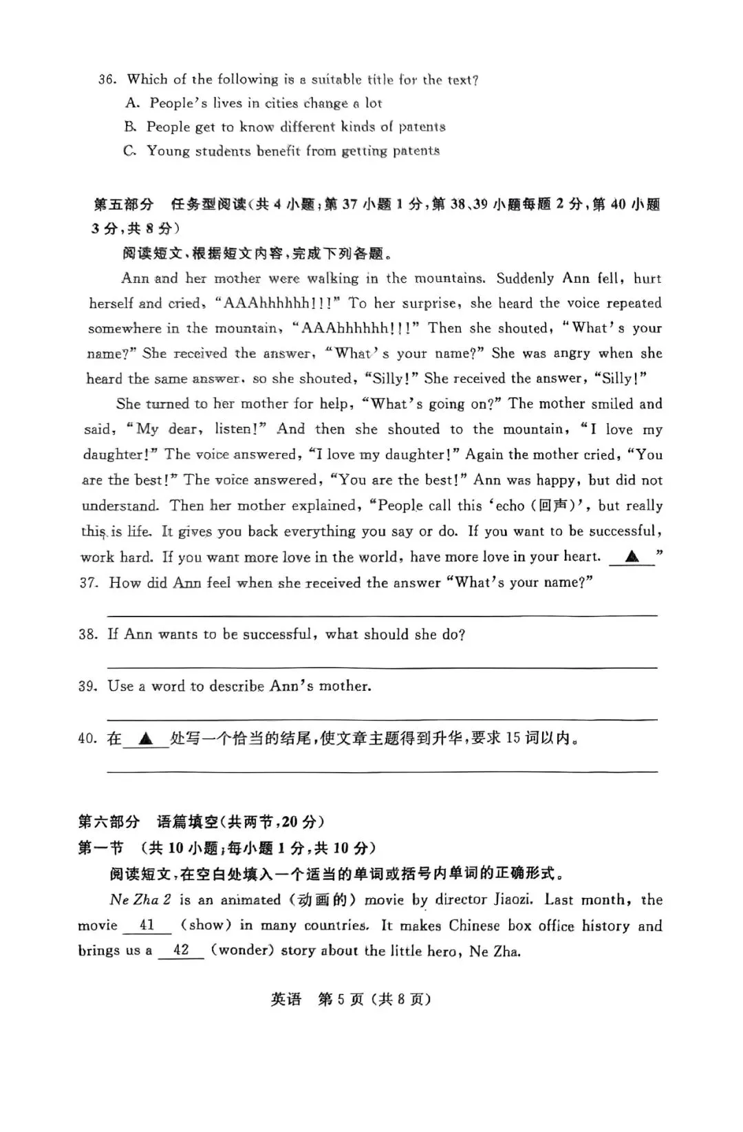 初三二模 | 语文试卷及评析 <杨浦+闵行+虹口>