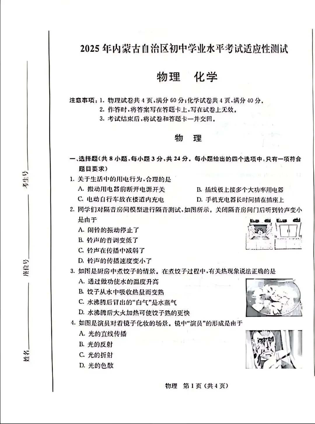 2026年4月包头中考一模试卷和答案:语文物理化学