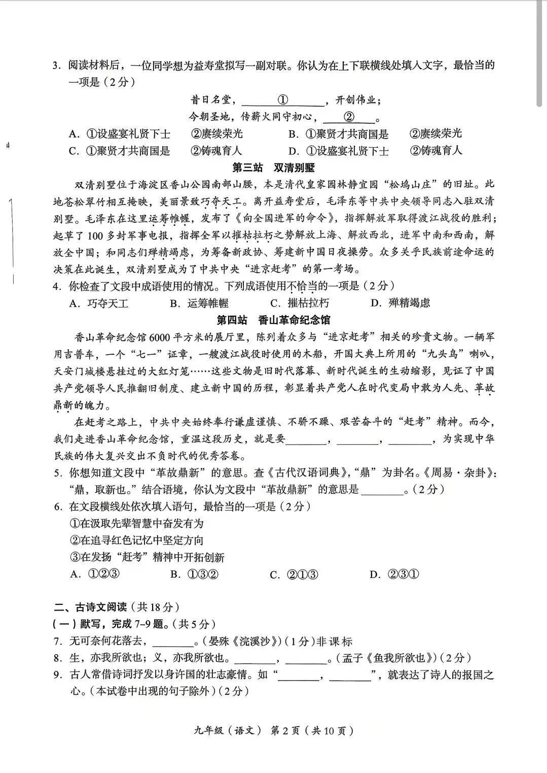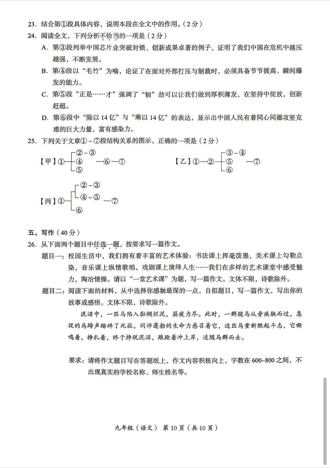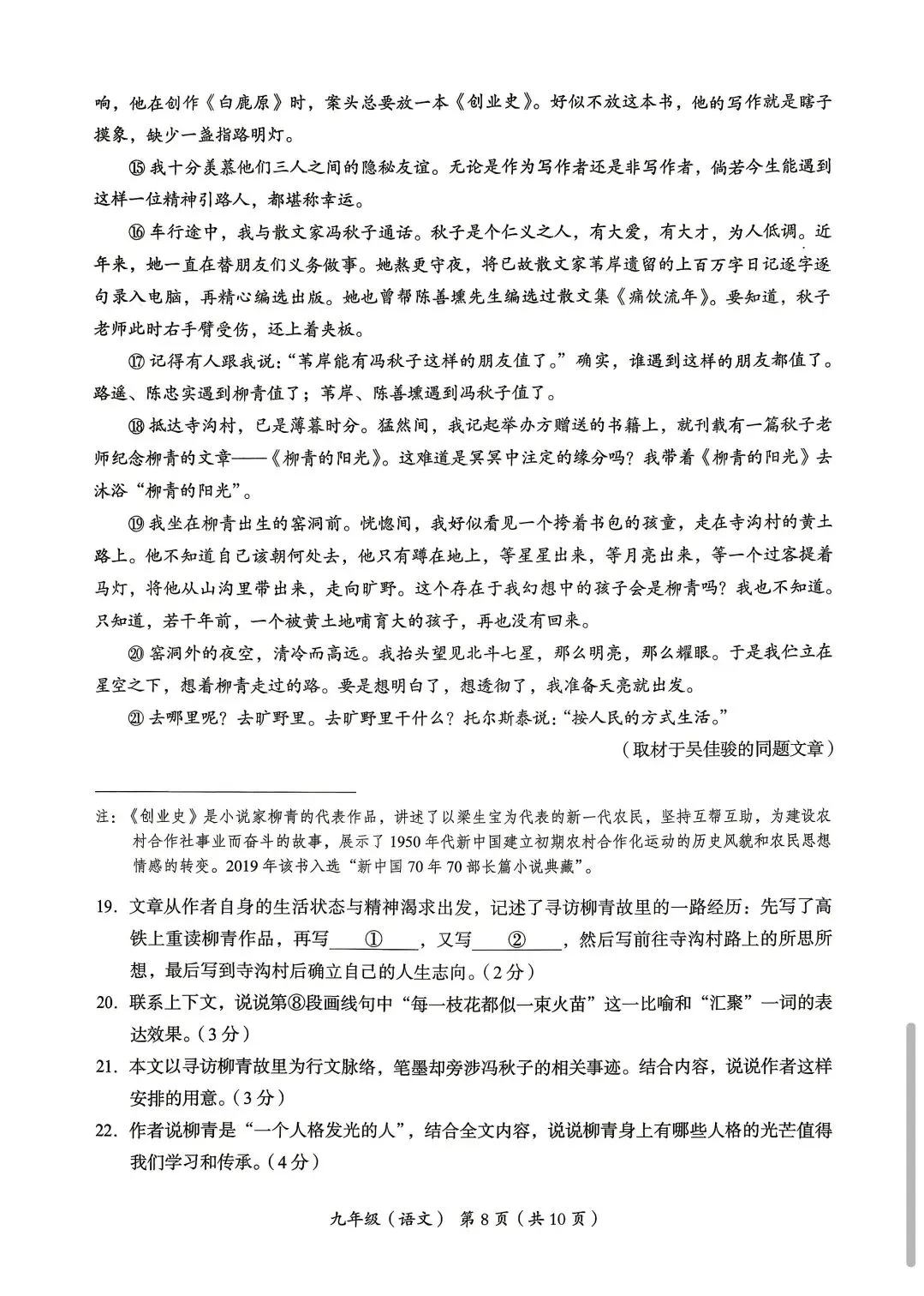 初三二模 | 语文试卷及评析 <杨浦+闵行+虹口>