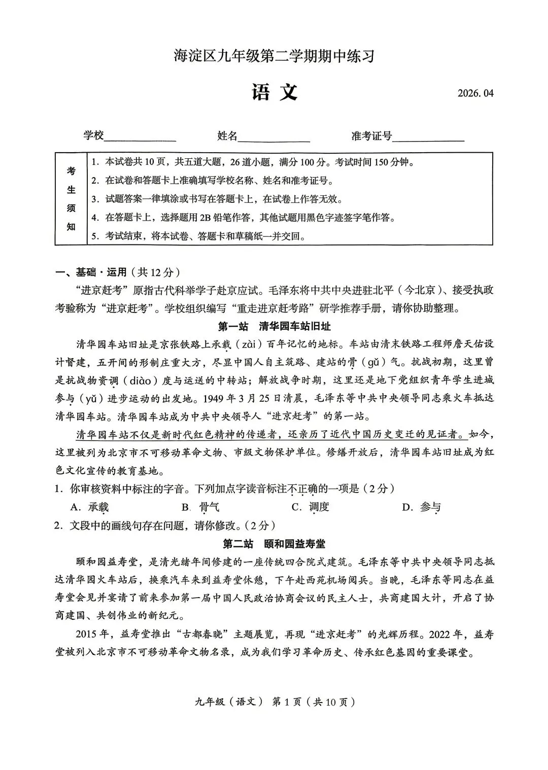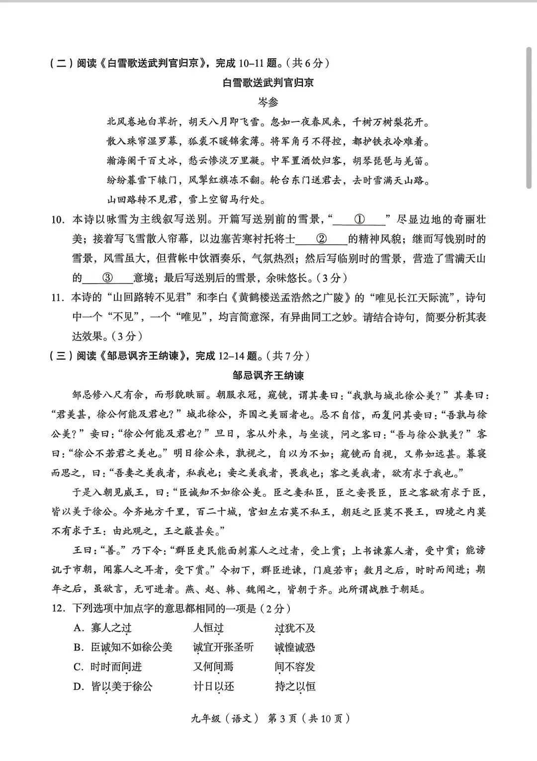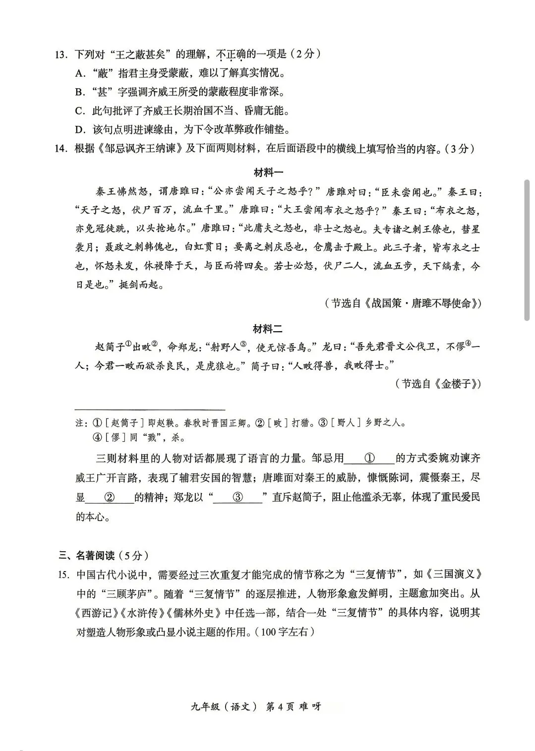 初三二模 | 语文试卷及评析 <杨浦+闵行+虹口>
