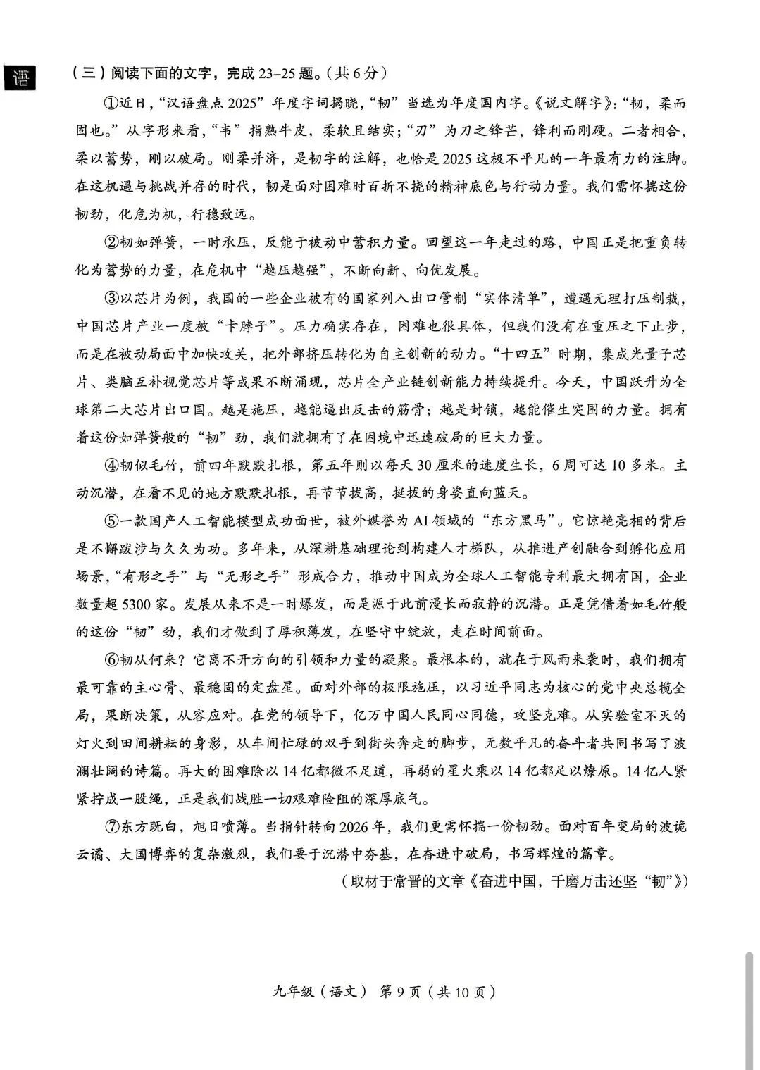 上海25-26学年初三二模试卷+答案(杨浦闵行嘉定静安不断更新中)