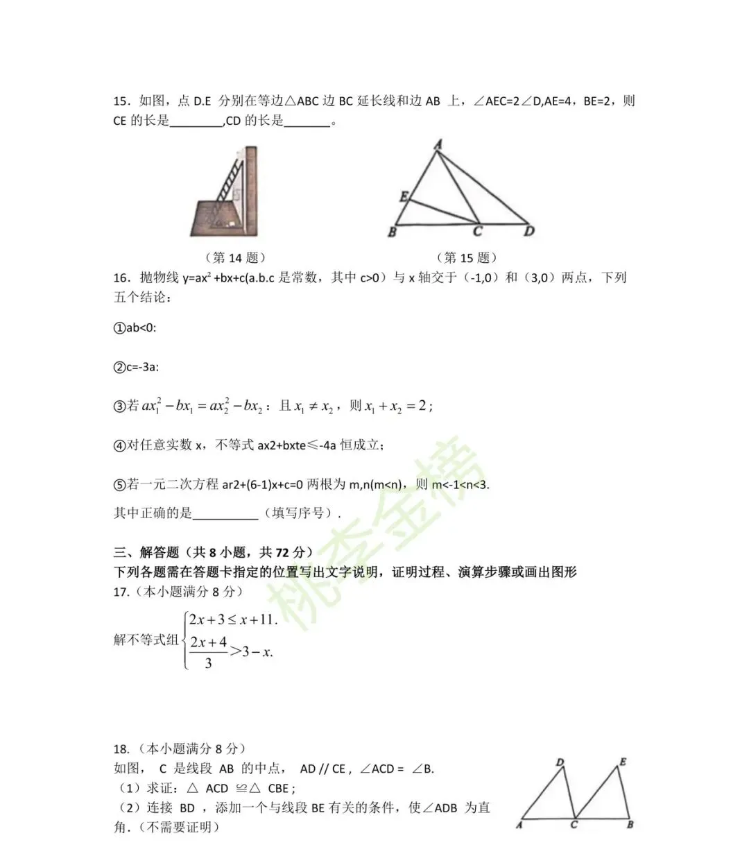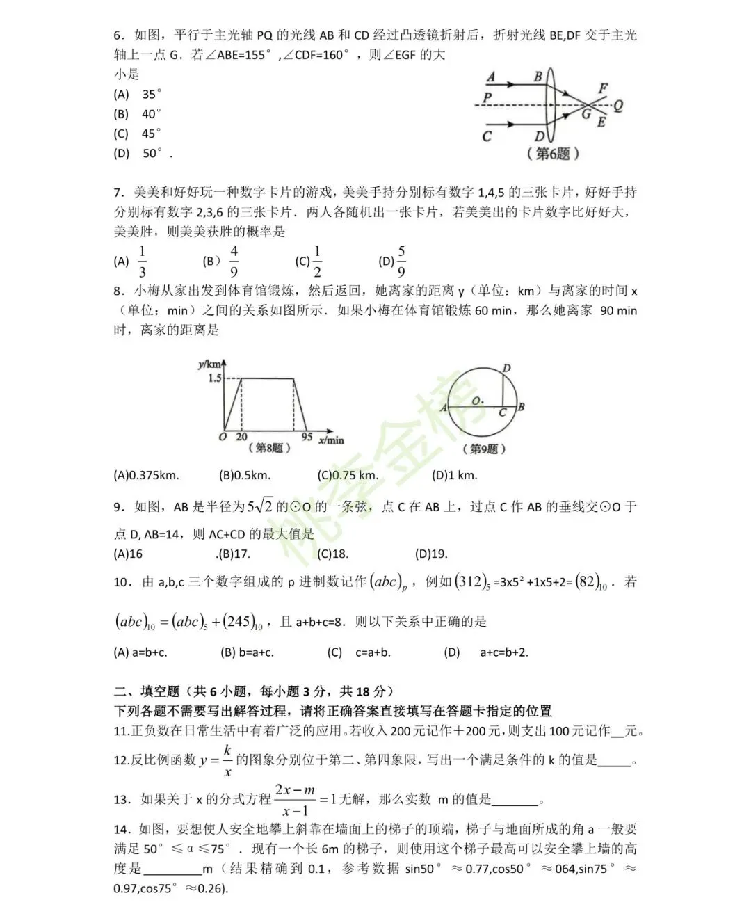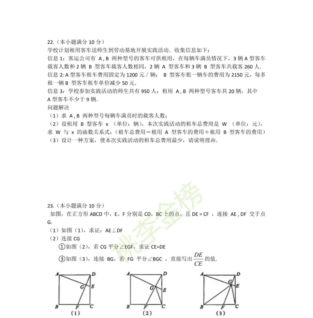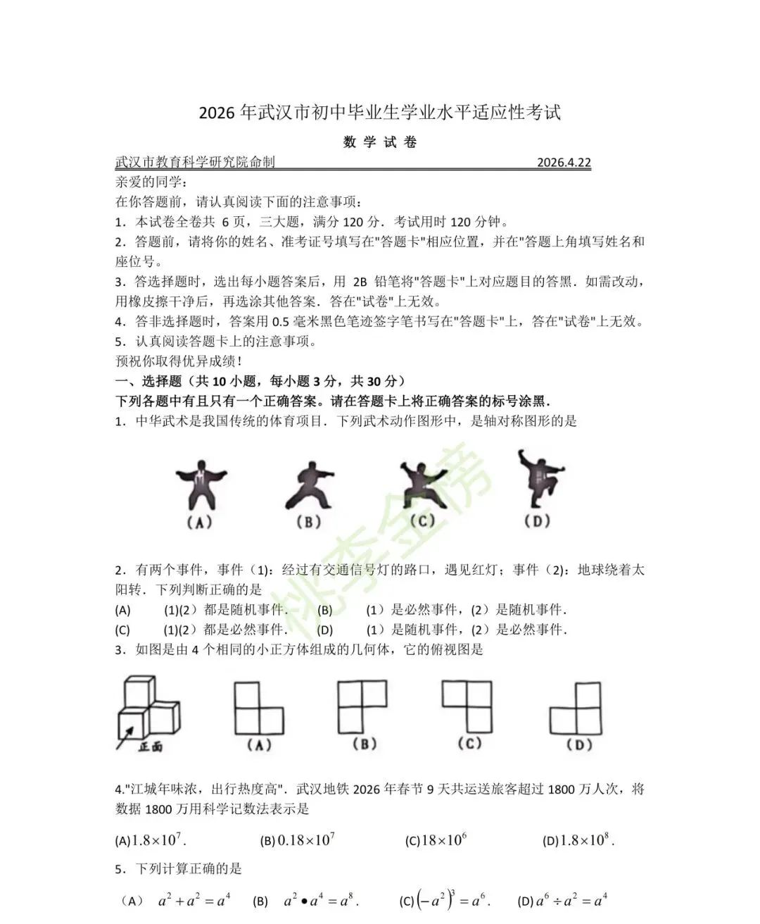 武汉初三四调数学试卷高清版整理出炉