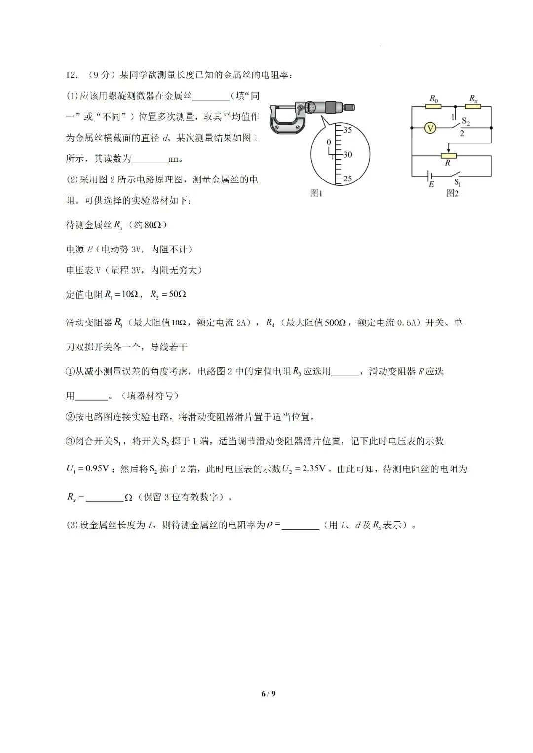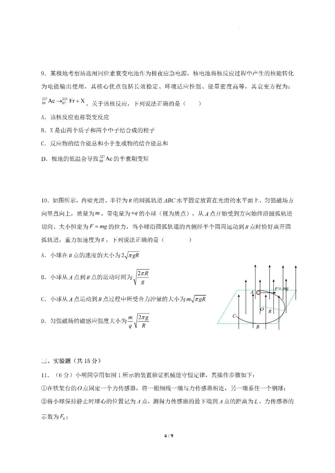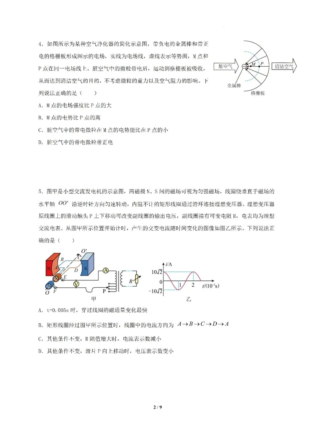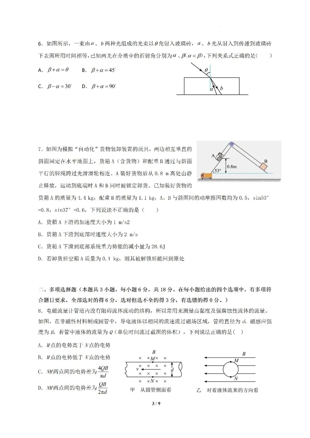 2026届中山市高三二模物理试卷