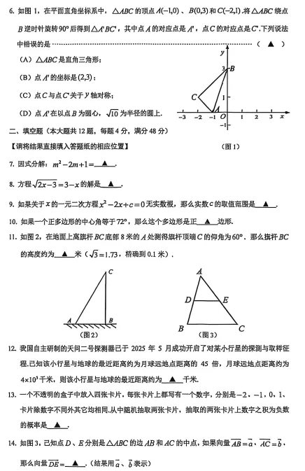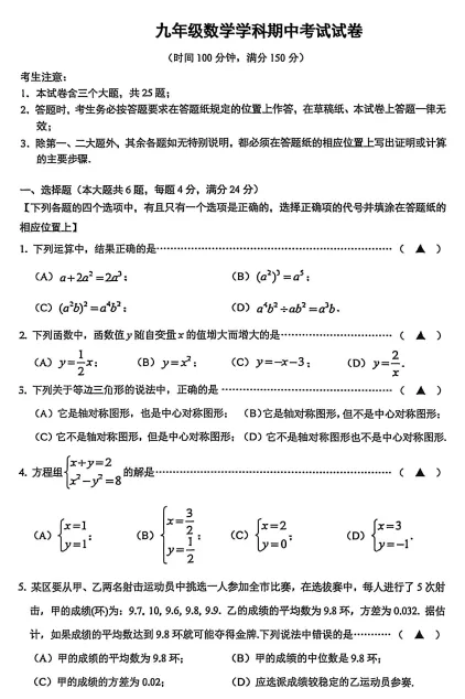 2026初三二模 闵行语文、静安数学试卷及答案分享