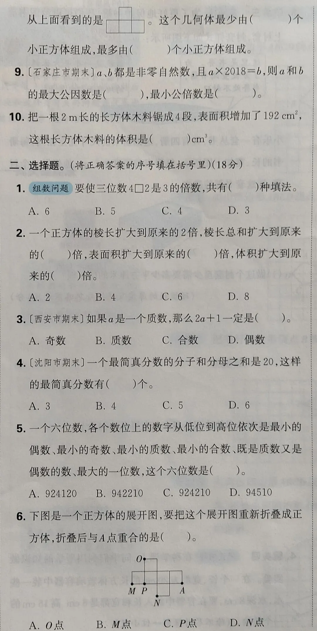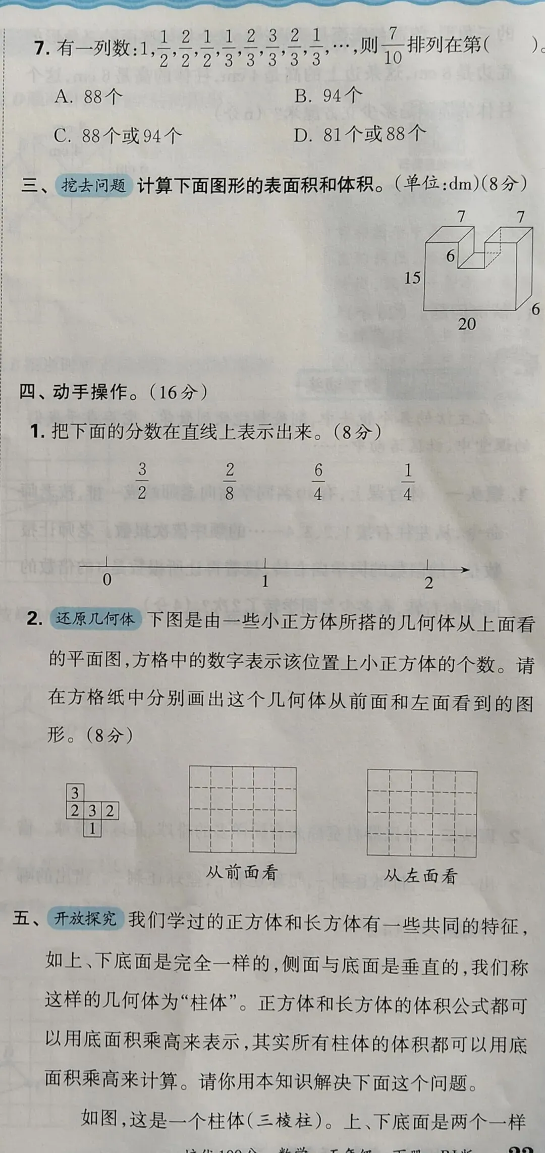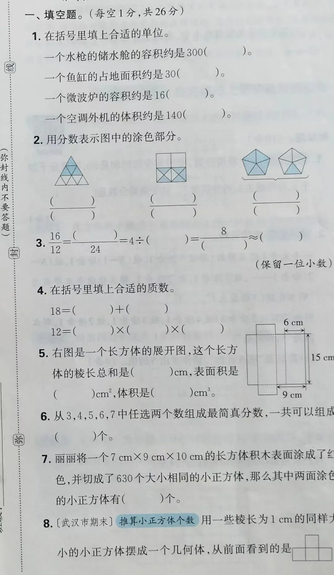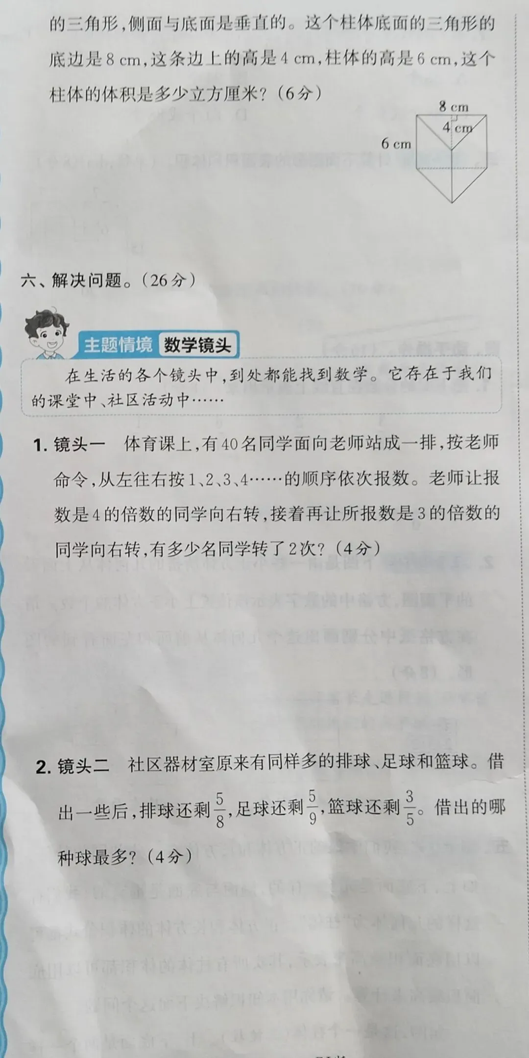 小学六年级数学期中试卷,人教版六年级下册数学期中测试题