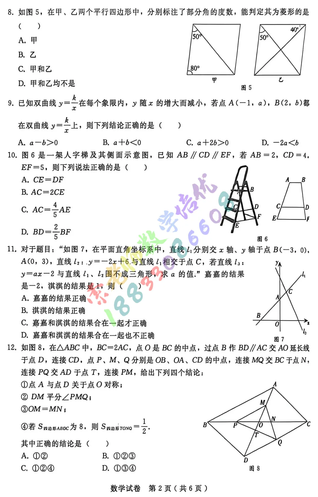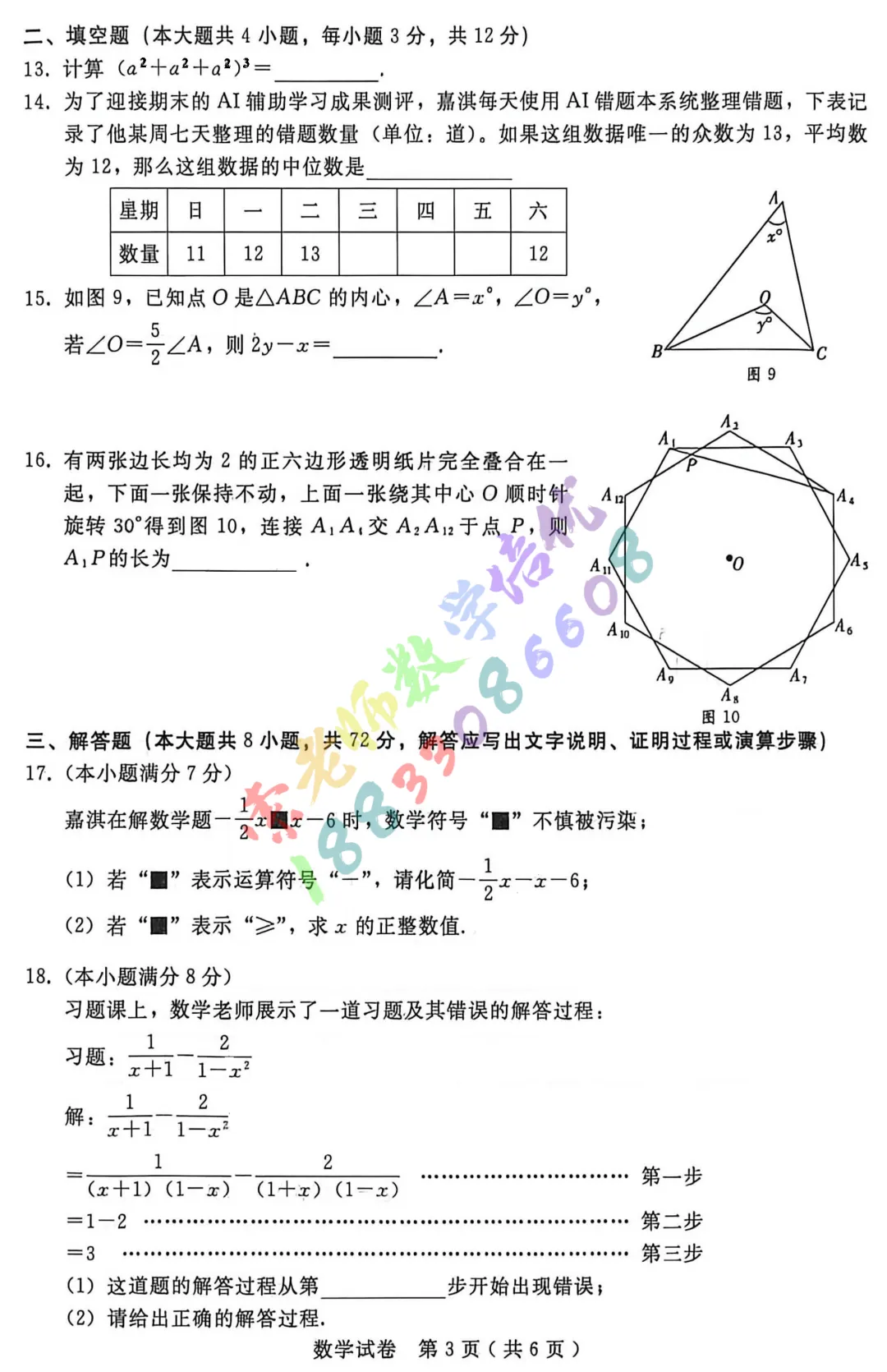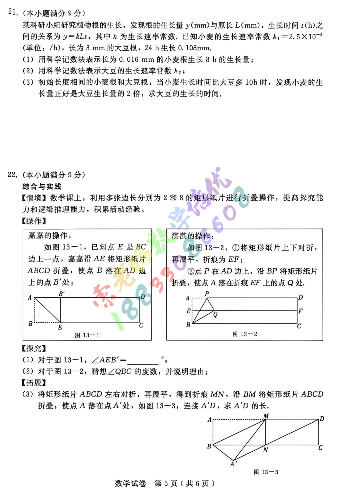 2026年邢台中考一模数学物理试卷(含参考答案)