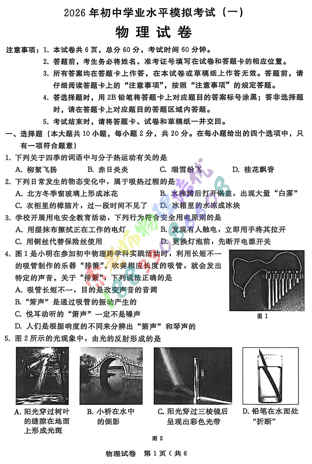>2026年邢台中考一模数学物理试卷(含参考答案)