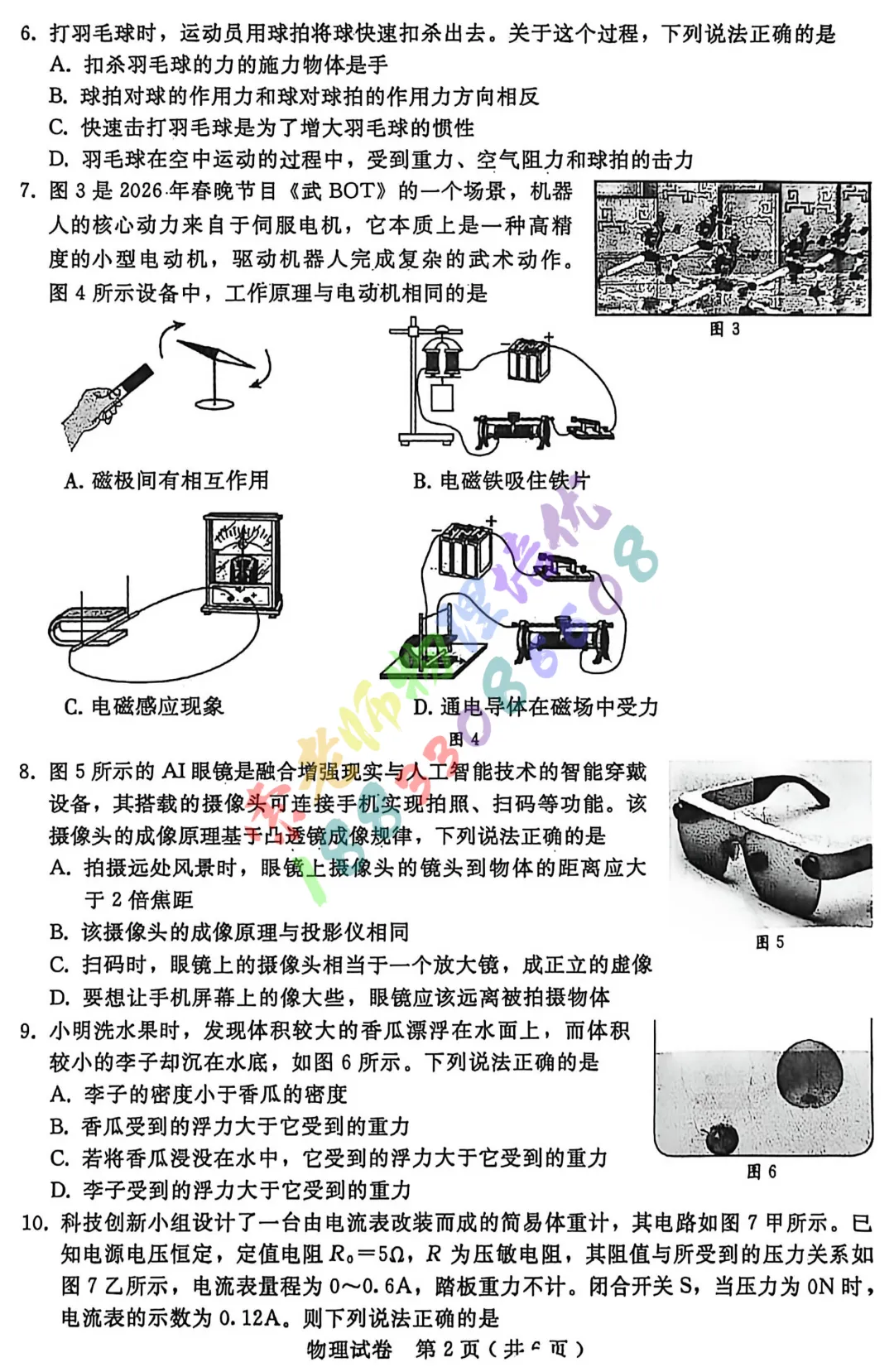 青铜峡市宁朔中学2026高三物理二模考试卷