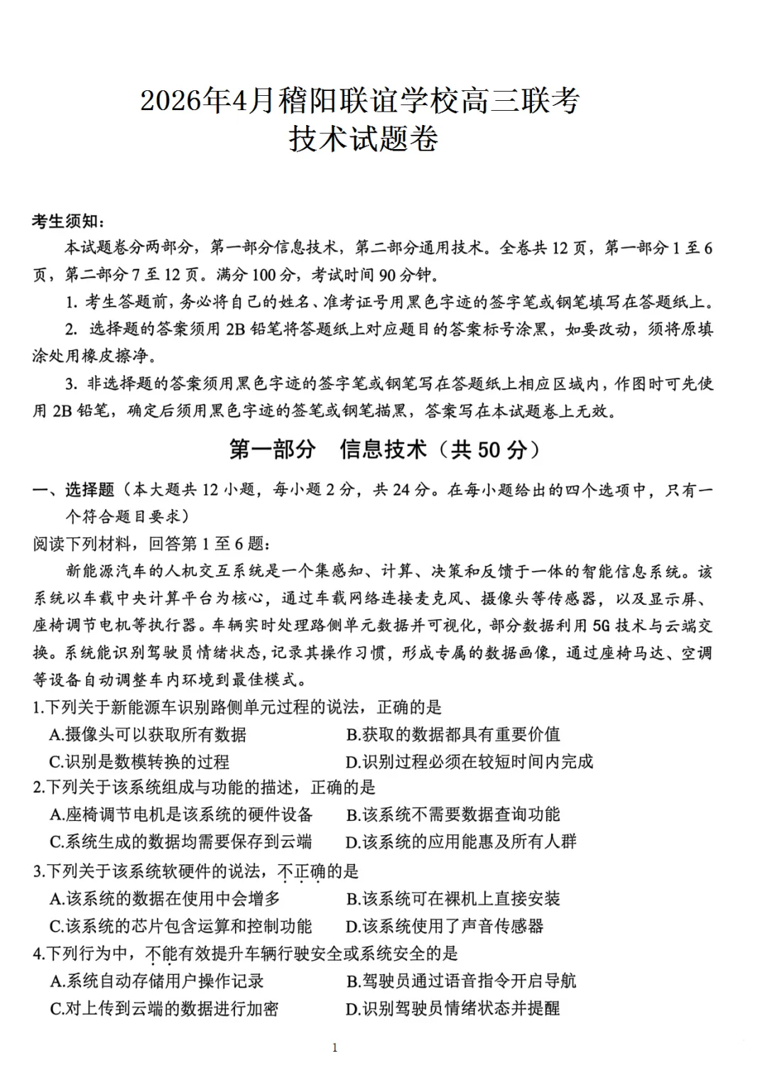 南京树人·九下零模·英语·26年试卷(建议可打印出来让孩子自己学会总结考点等)