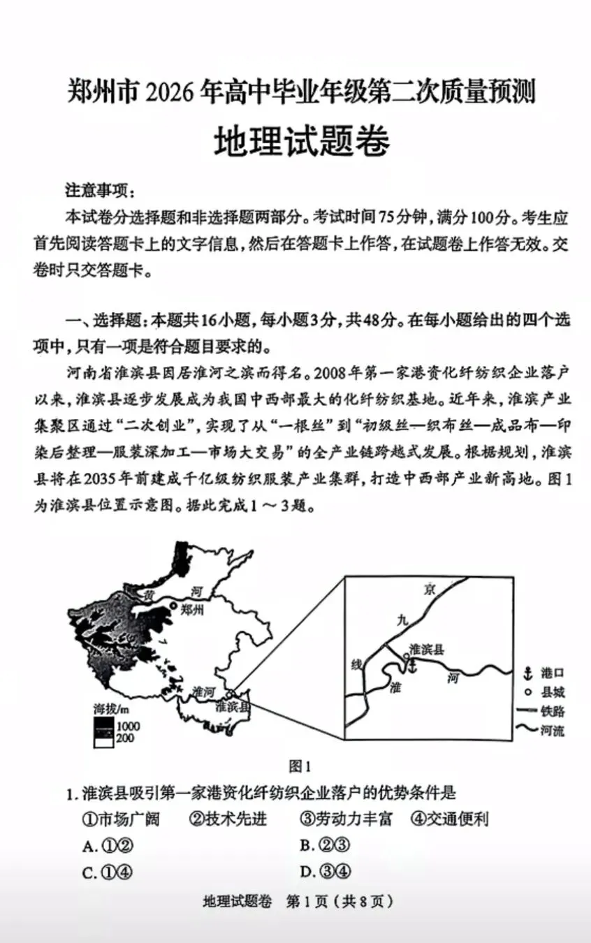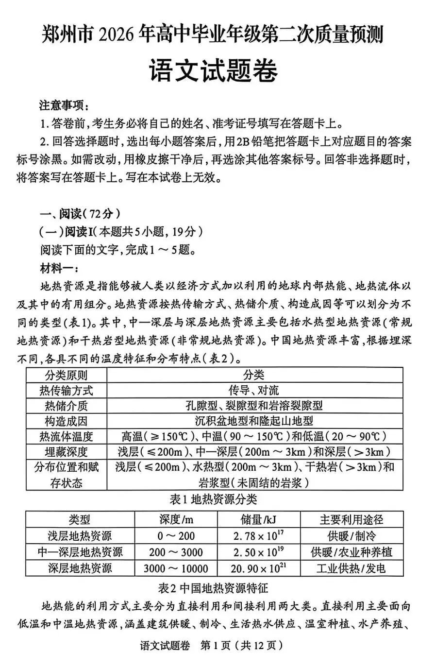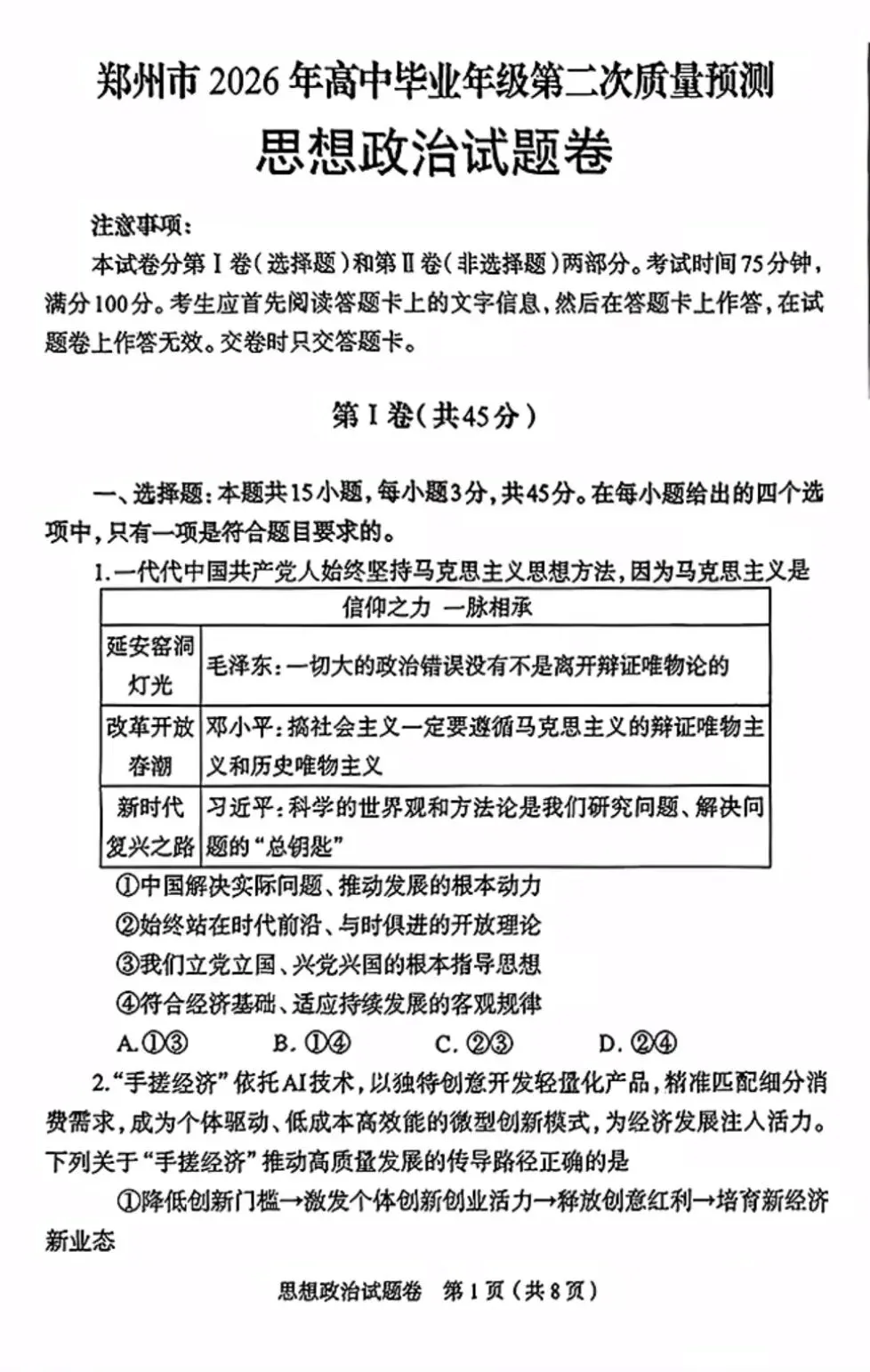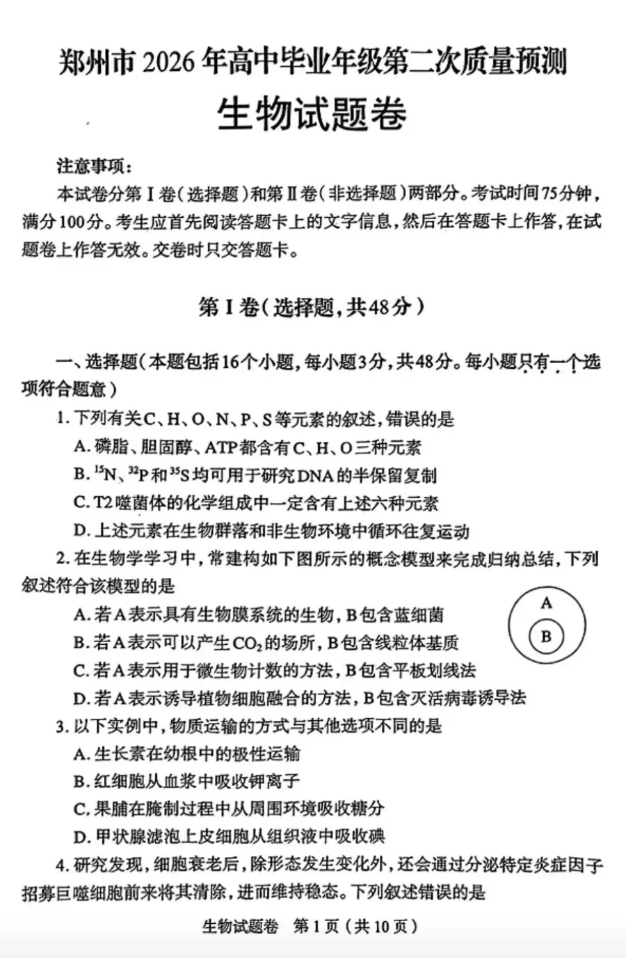 2026郑州高三二模时间是4月20日-22日,已经全部考完,我们整理了全套的试题及答案,高清电子版,家长及考生可以下载打印!
