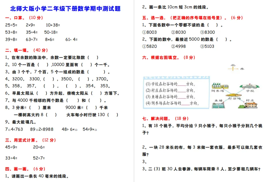 七、解决问题。(18分)