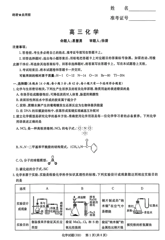 >【高三试卷】湖南省雅礼中学2026届高三月考试卷(八)(全科)