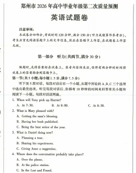 根据公开信息,郑州市二模(高中毕业年级第二次质量预测)的命题工作由郑州市教研室:负责整体命题规划、试题审核及质量把控,确保试题符合河南新高考“3+1+2”模式要求和郑州市高三二轮复习大纲,市内顶尖高中资深教师:包括郑州外国语学校、河南省实验中学、郑州一中、郑州四中、郑州七中、郑州十一中、郑州中学、郑州四十七中等学校的资深高三教师、高考教研专家,共同参与具体学科试题的命制、选题和打磨,具有较高参考价值!