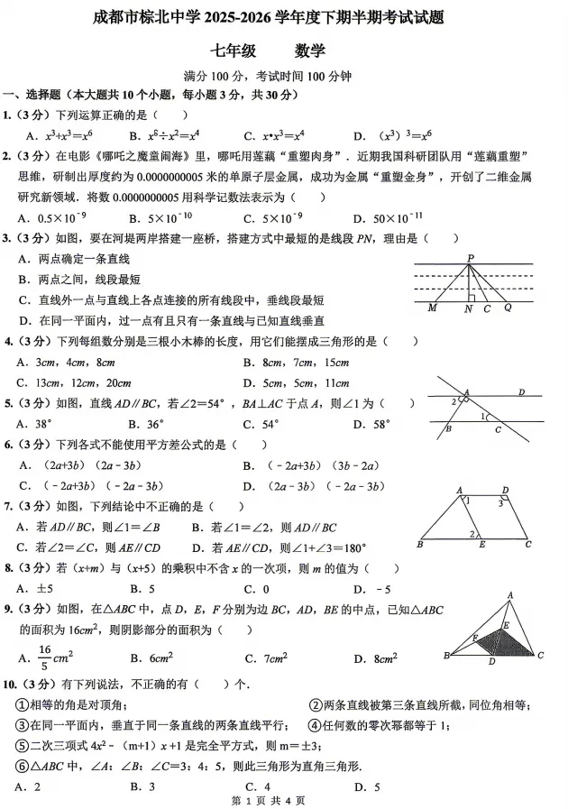 成都专属:实时更新成都市初中名校开学考、期中、期末、历年中考模拟、中考真题试卷及答案,助力成都学子金榜题名!所有试卷均可手机端、电脑端电子版下载。