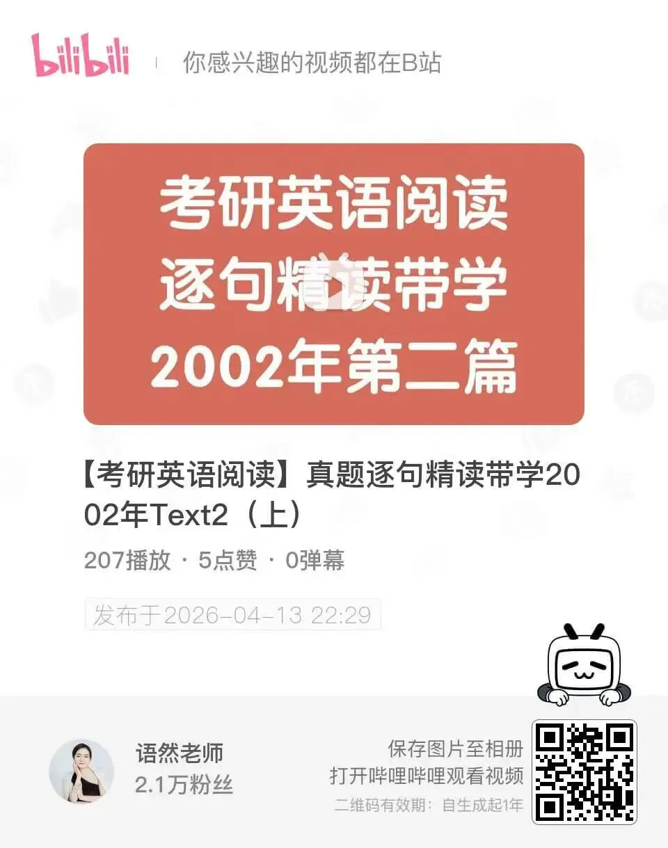 最近老师已经在B站开始给大家更新考研英语真题阅读精读啦