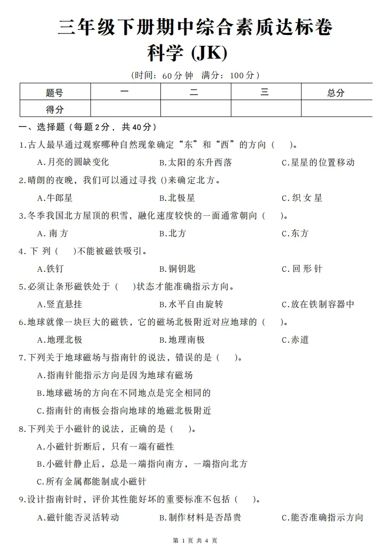 「26春 小学学校打印试卷」