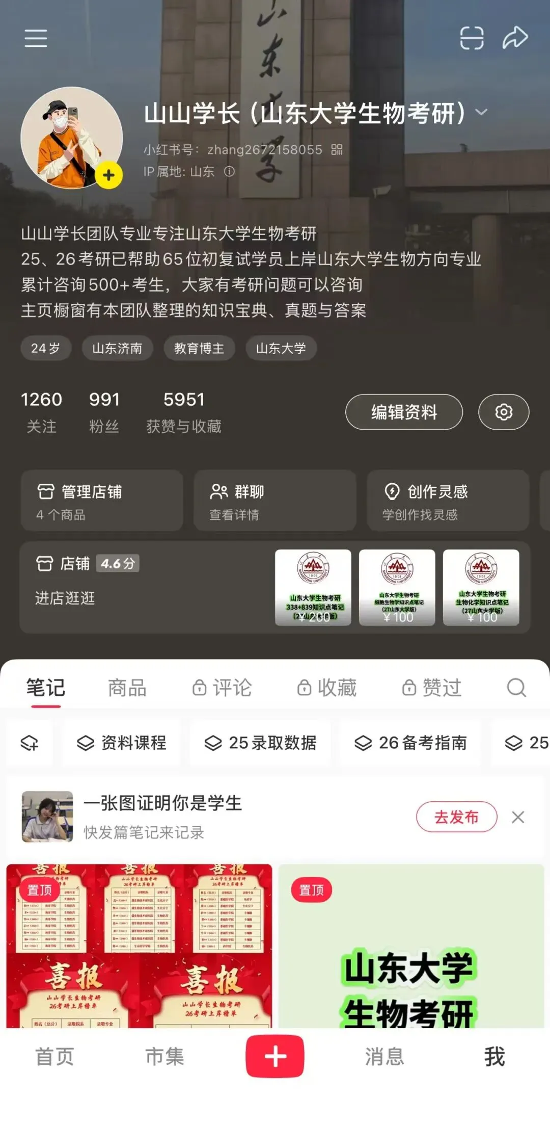 - 小红书搜索“山山学长生物考研”,进入我的小红书主页店铺就可以直接买了,下午五点前拍下当天发走;