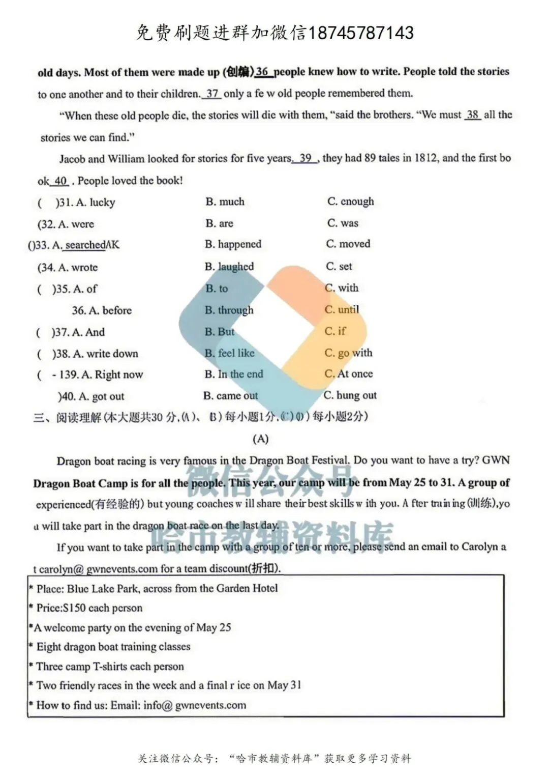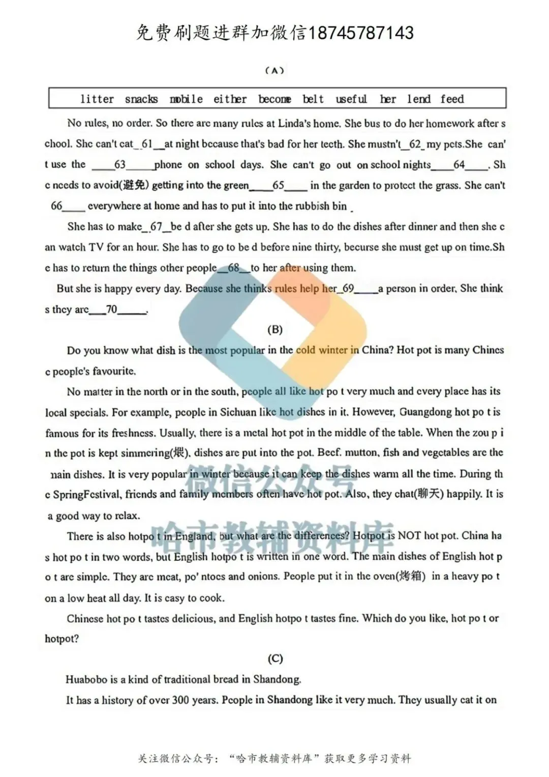 弘文资源群每天免费提供名校月考题新题型,进群添加微信!
