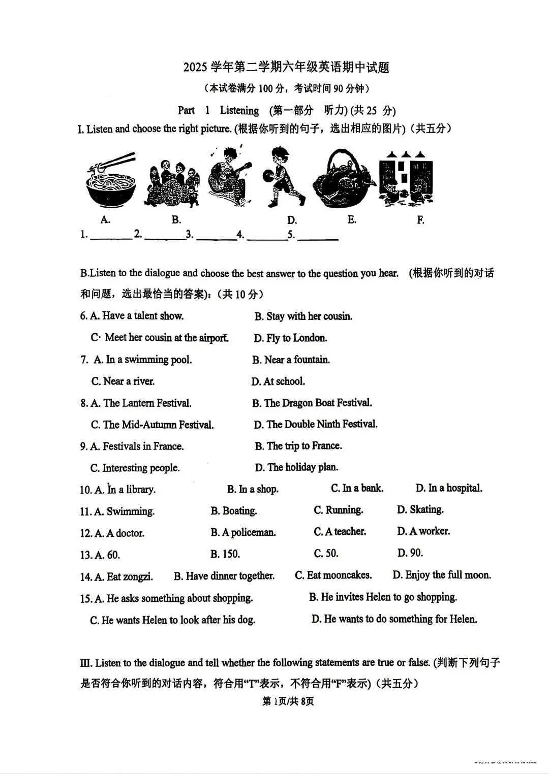 >【SH初中英语试卷群更新】上海市宝山区2025-2026学年六年级下学期期中考试英语