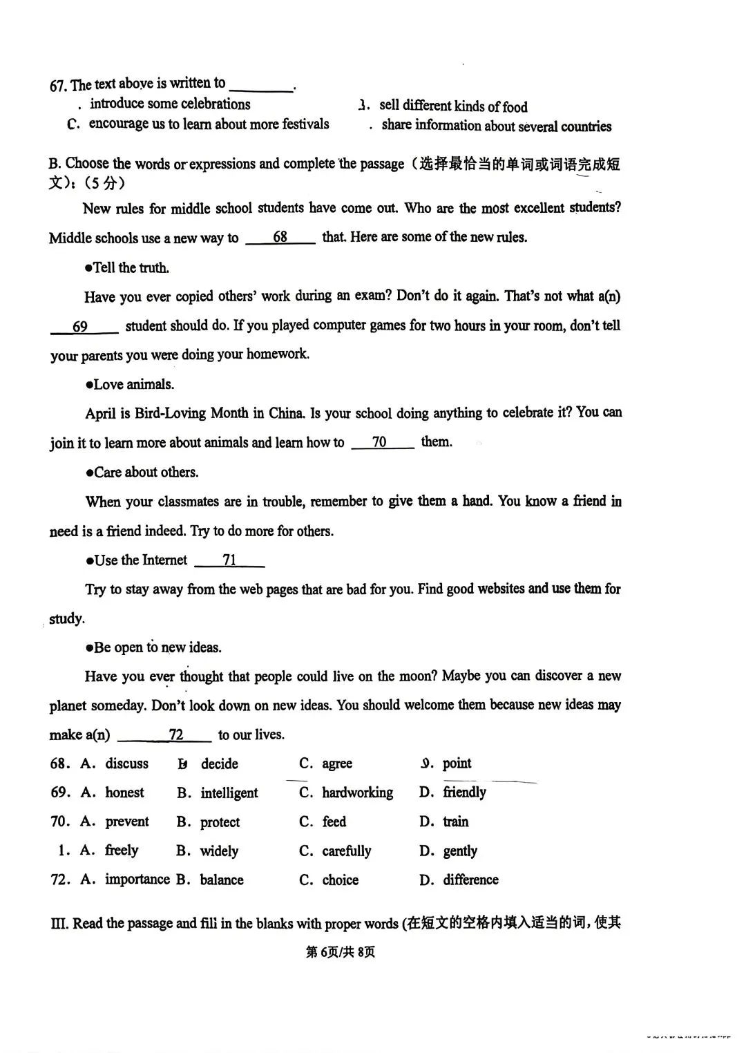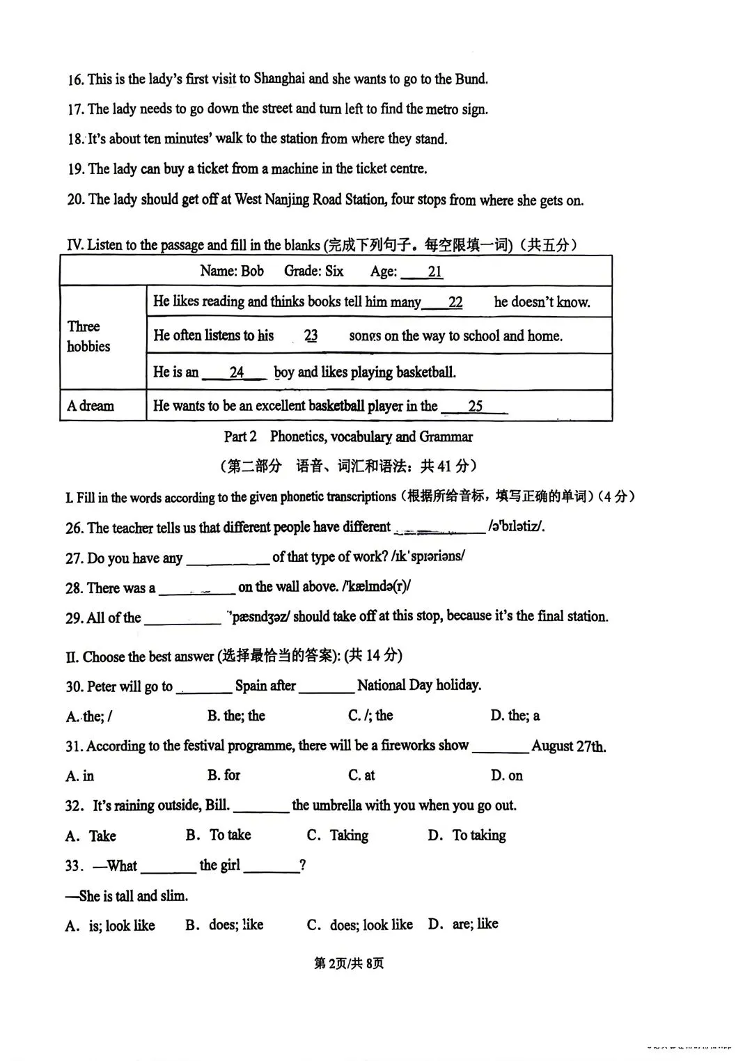 【SH初中英语试卷群更新】上海市宝山区2025-2026学年六年级下学期期中考试英语