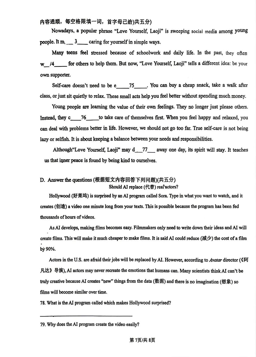 2026哈49中学七年级下英语期中试卷及答案
