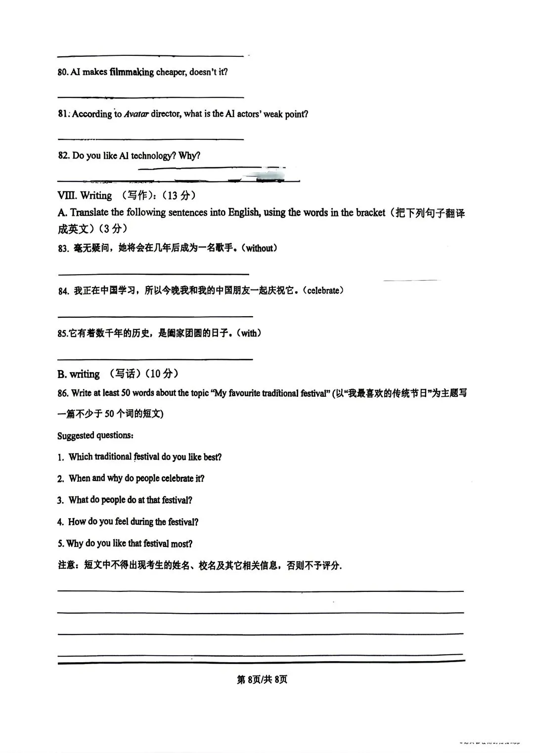 部分试卷