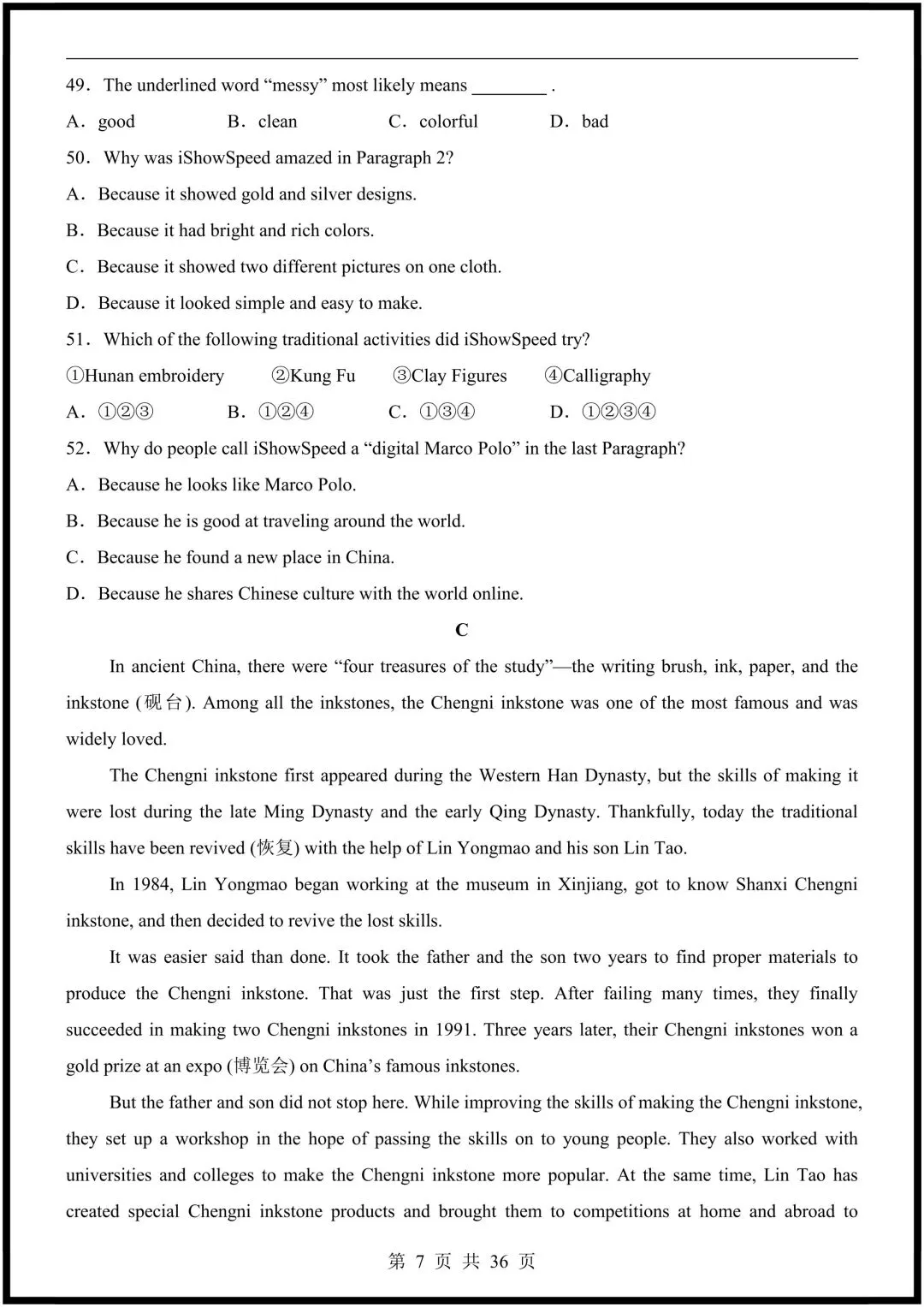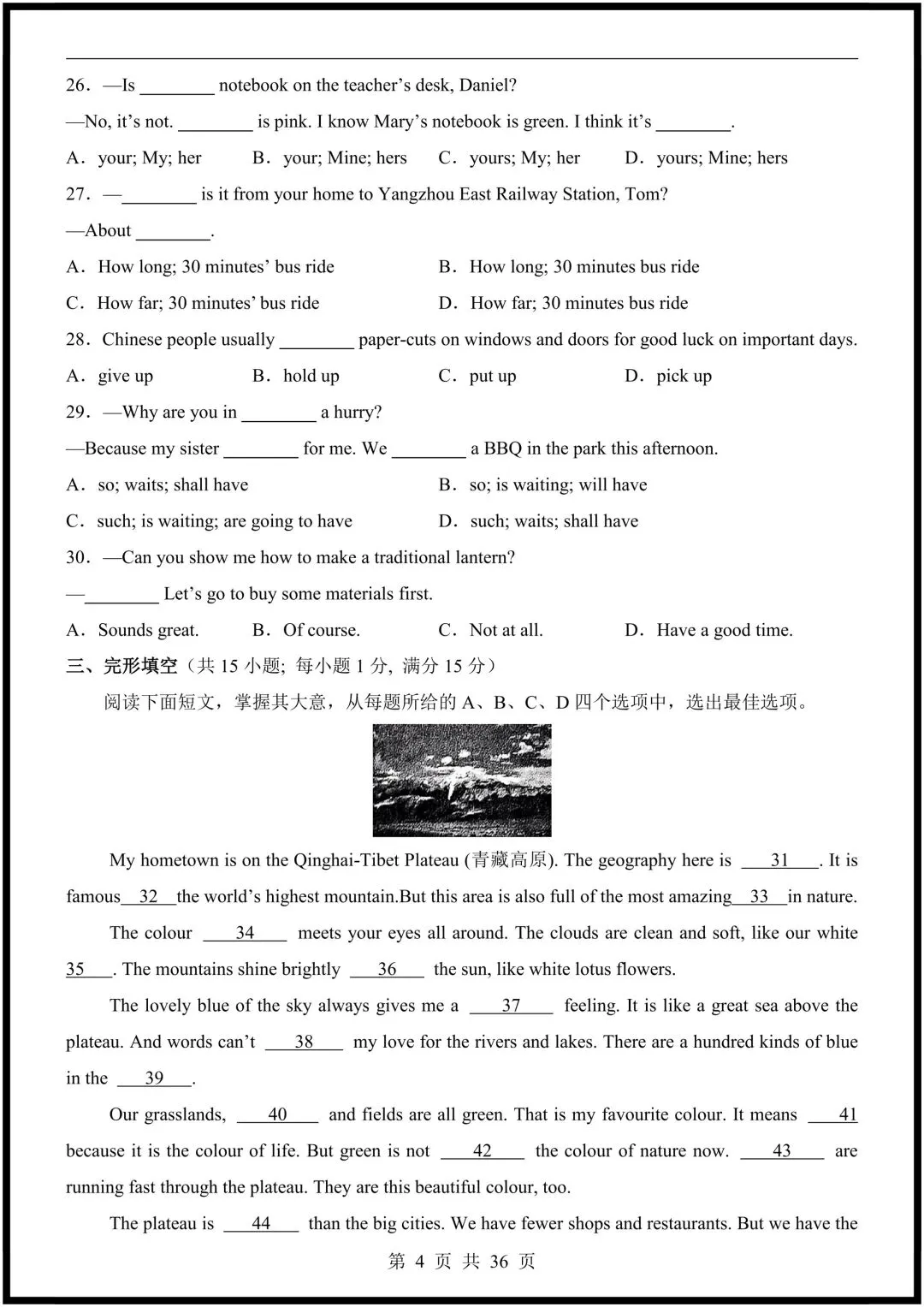 2026春(译林版)七下英语期中试卷(多套含解析),电子版可打印!