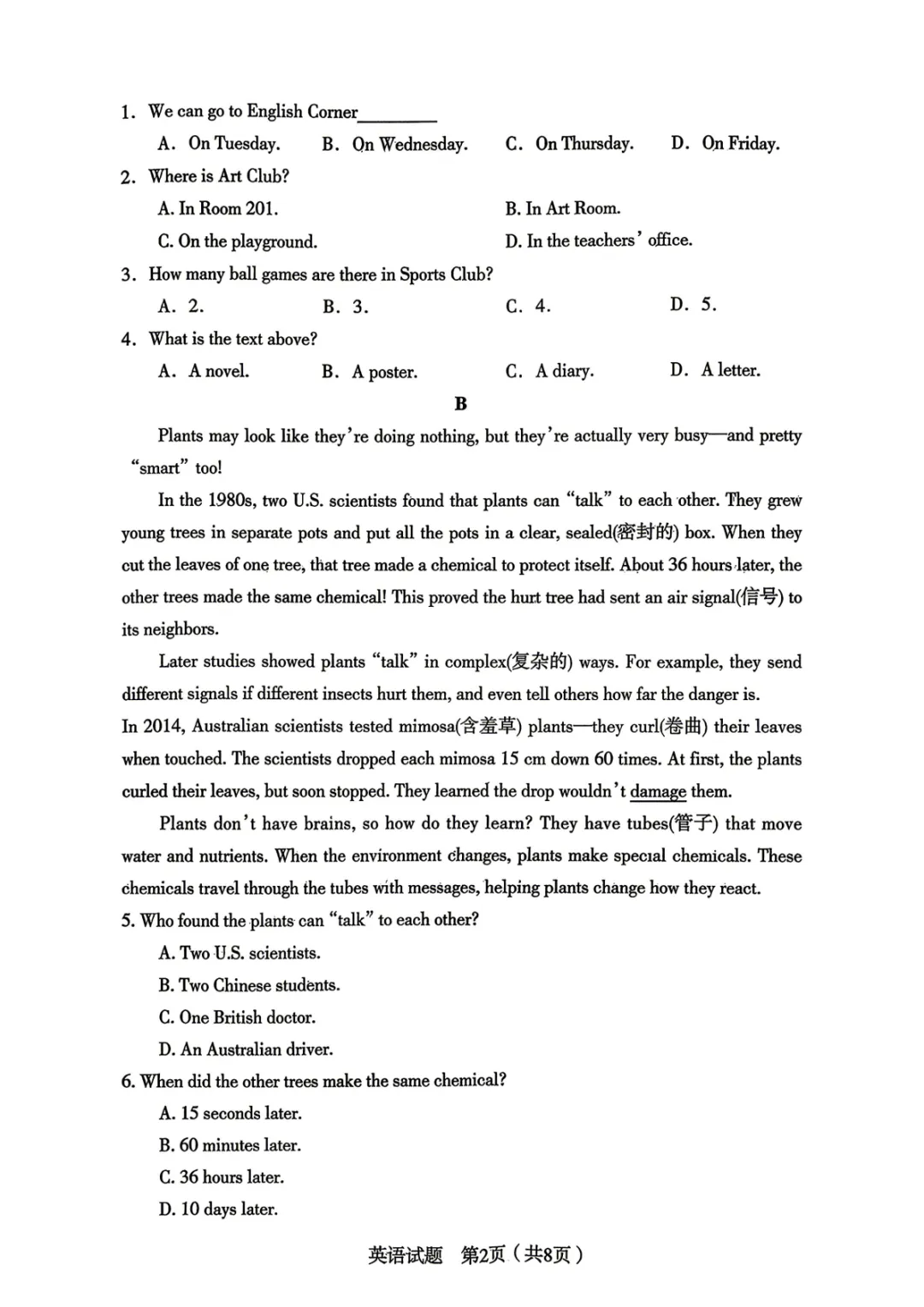 2026春(译林版)七下英语期中试卷(多套含解析),电子版可打印!