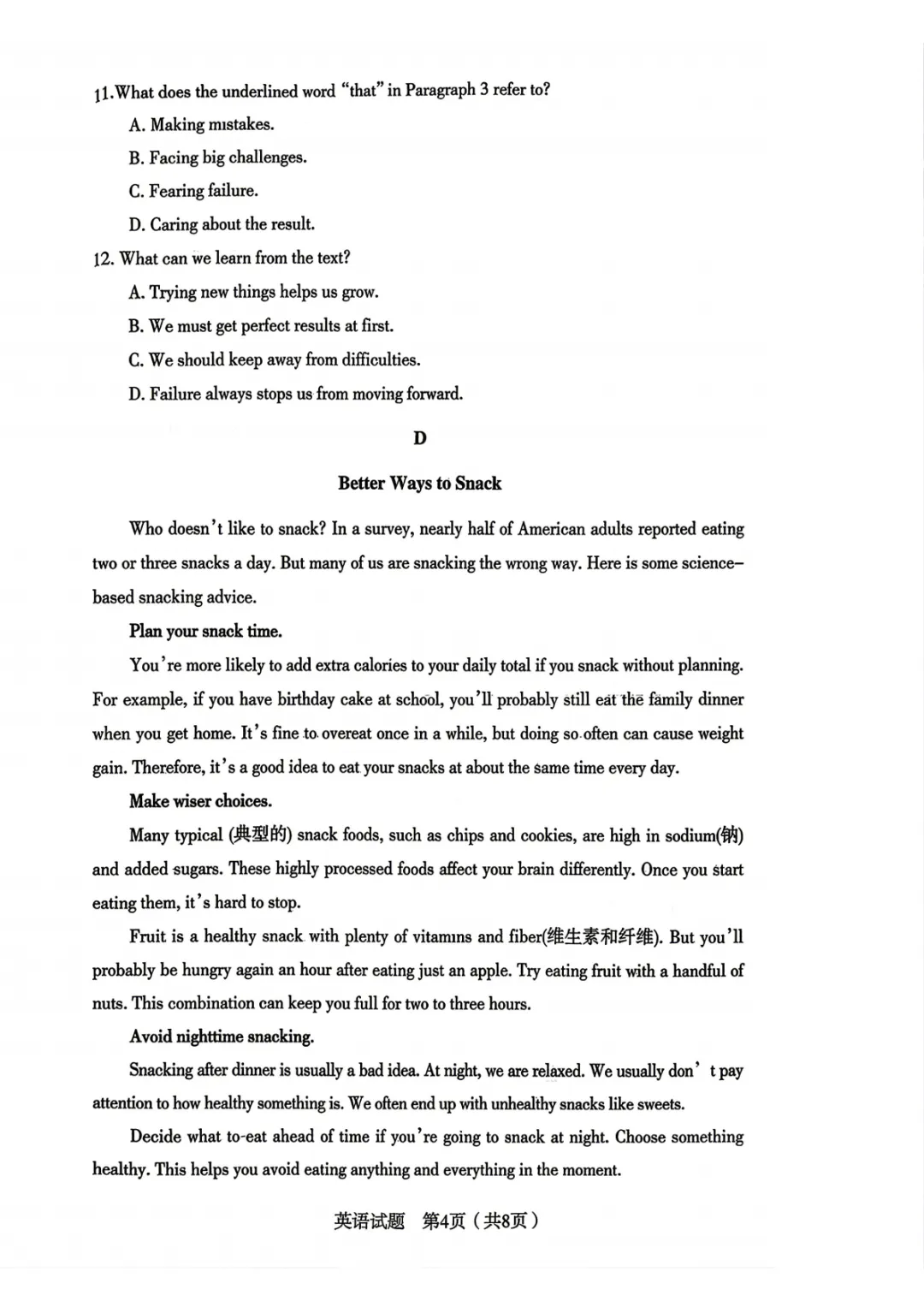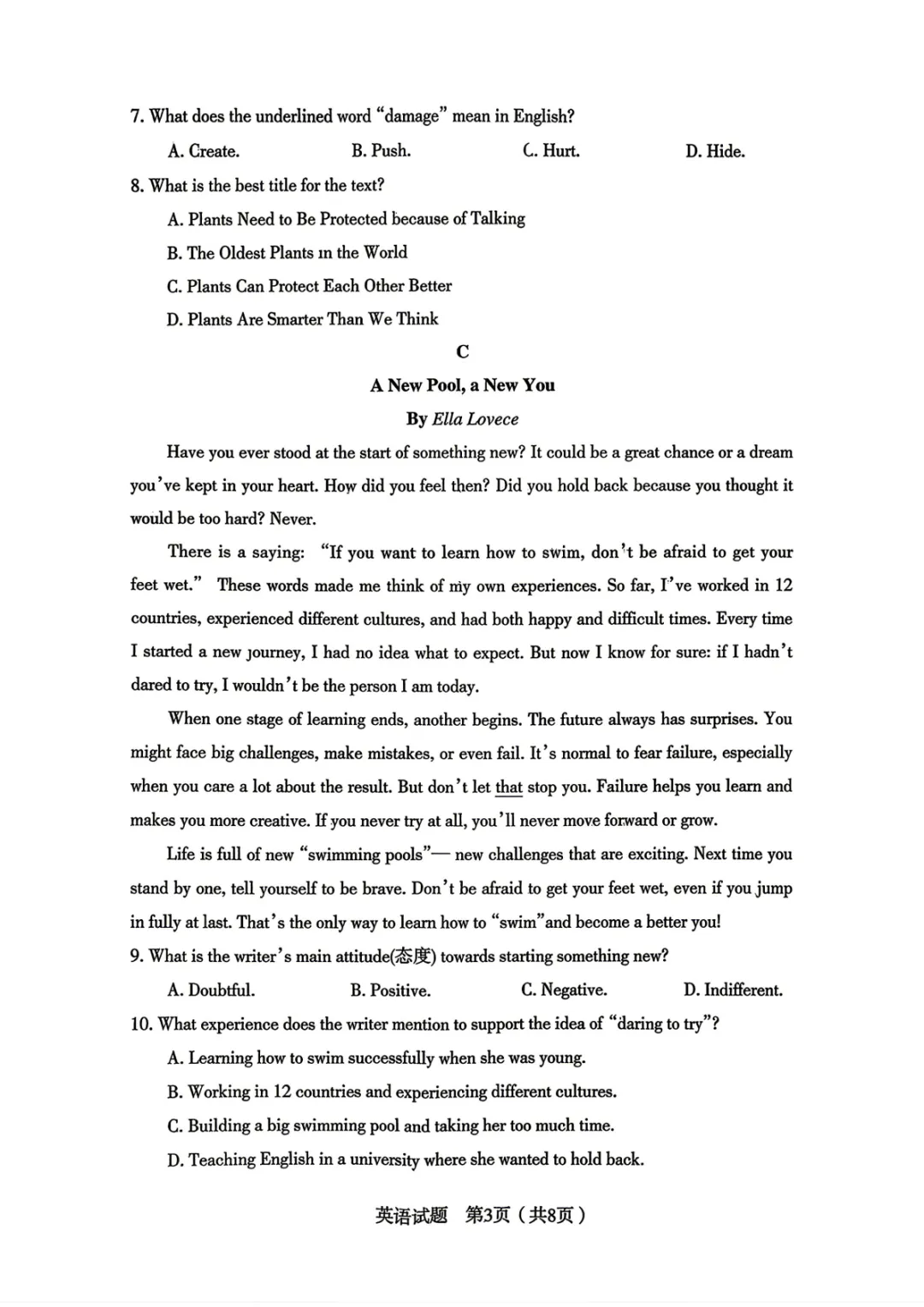 >2026.4沈阳沈河九下一模英语试卷+答案