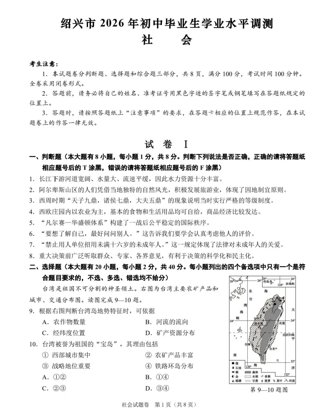 2026沈阳五区4月初三一模试卷+答案+独家解析免费下载!