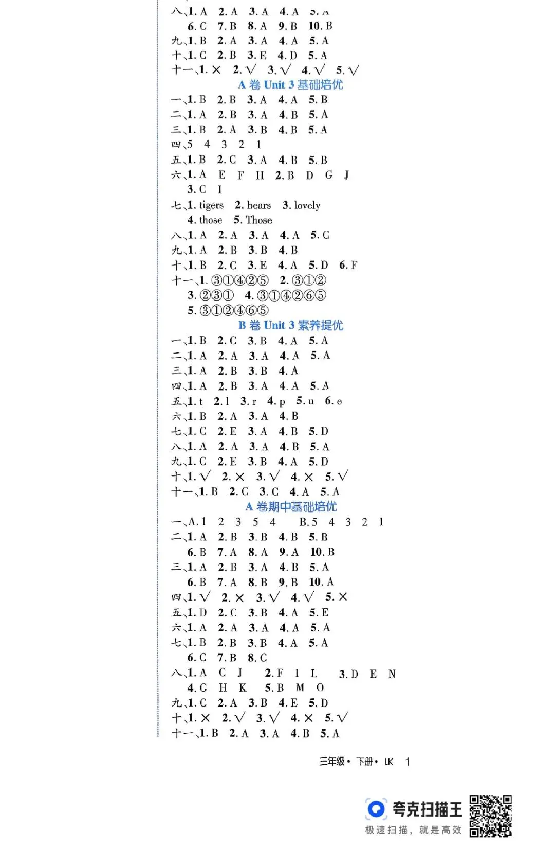 >鲁科版小学英语三年级下册期中质量检测试卷