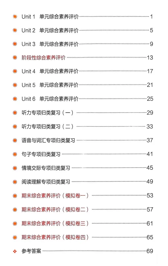 新版四年级下册人教pep版英语试卷:含1-6单元综合素养卷+期中综合素养+期末综合素养卷+专项复习卷,有听力+答案,可下载打印