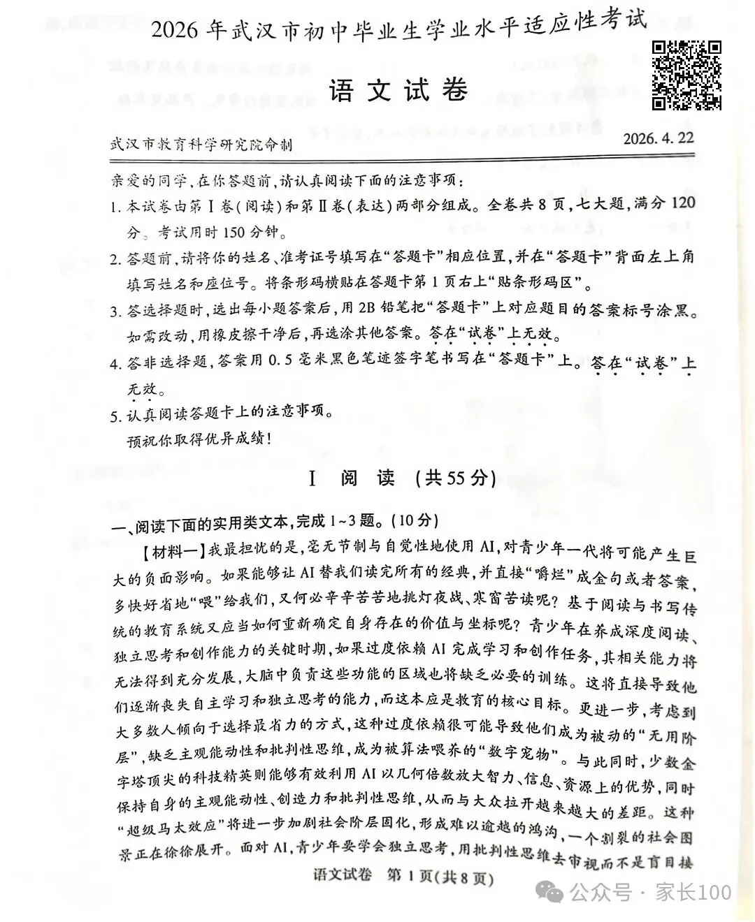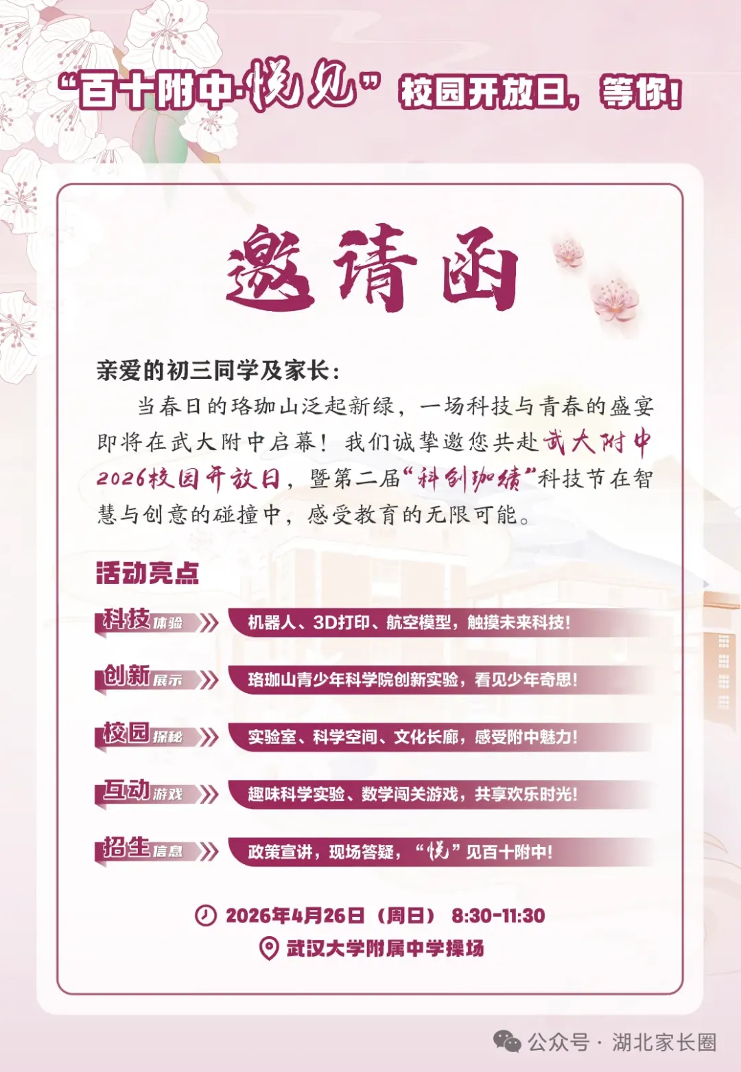 武汉初三四调语/数/英/理化试卷+答案出炉!18所高中校园开放日来袭!