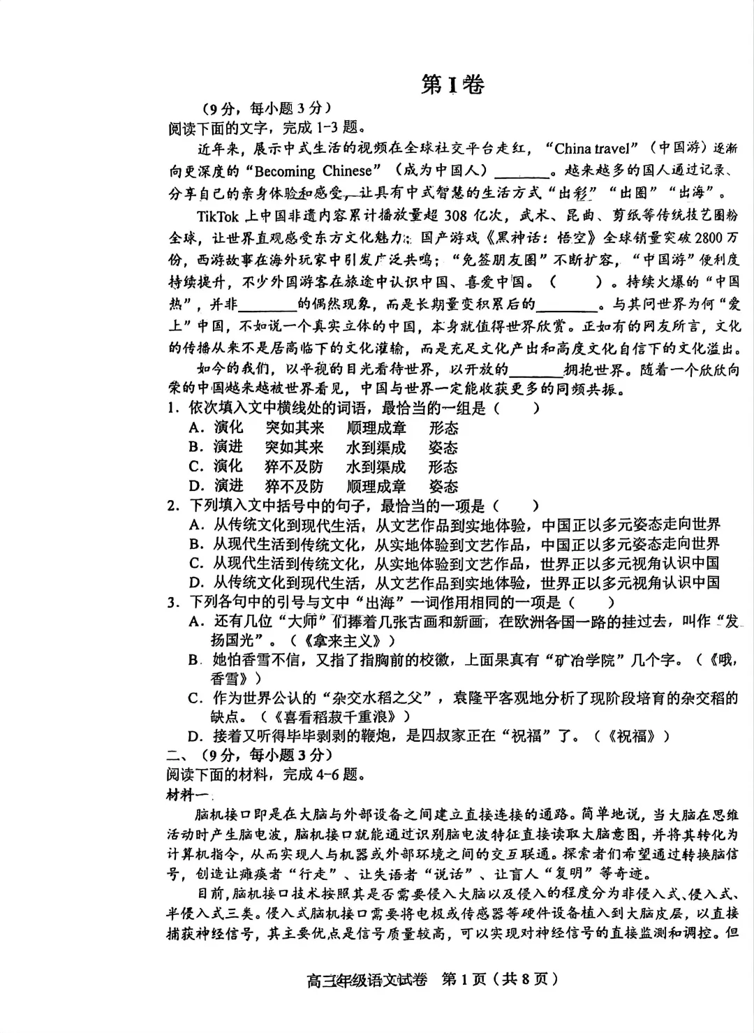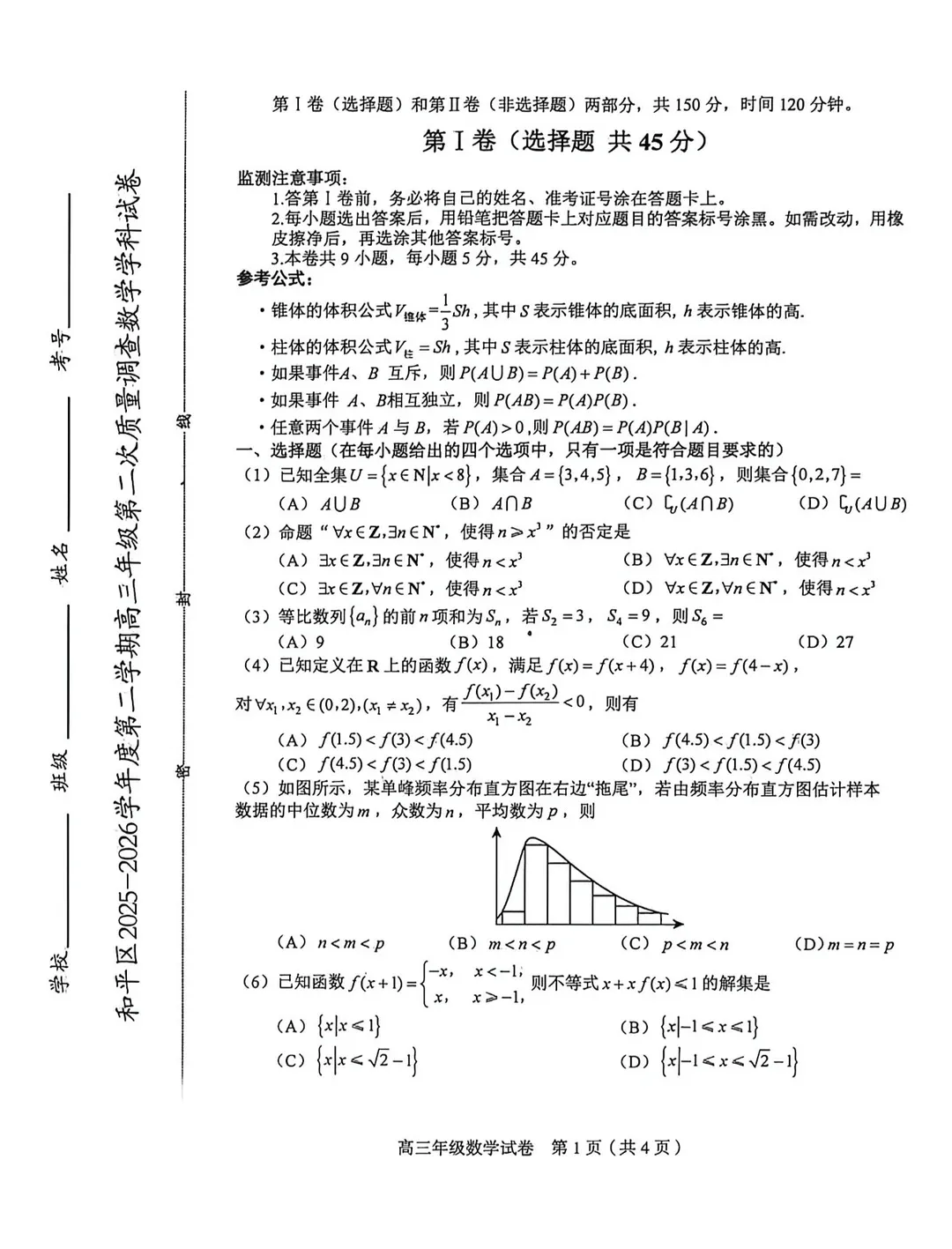 2026年天津高三二试卷及答案