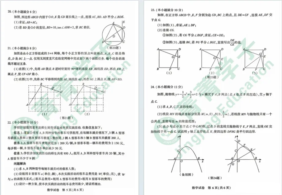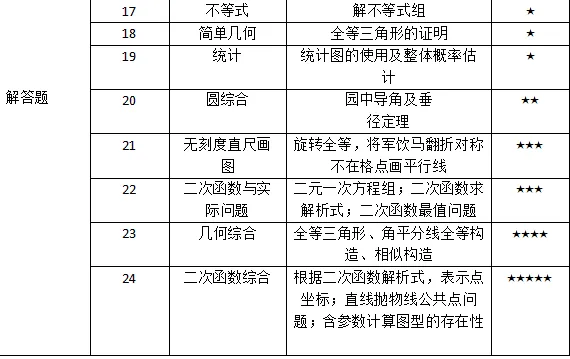 17-19题,题型或难度与平时没有变化,稳稳拿分,20题圆综合,第1问圆知识简单导角即可,2问考察垂径定理与三角函数的应用,没有复杂的计算,不需要将角换来换去,比平时训练简单。