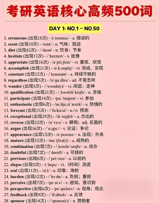 考研英语真题高频词!!PDF免费领取