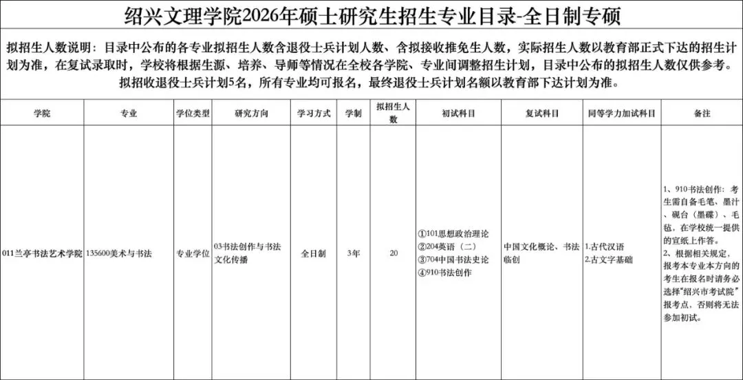 拟录取21人 | 2026年绍兴大学书法考研一志愿拟录取名单(鳳兮6人)